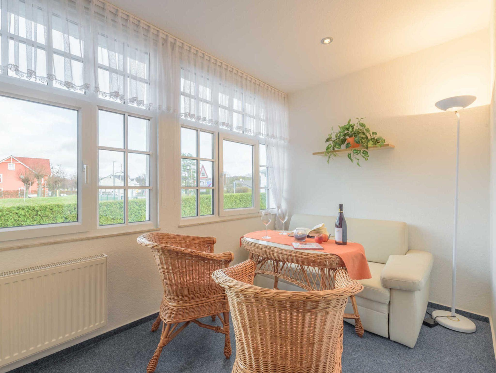 Die Villa Diana Wohnung 1 in Zinnowitz bietet komfortable Ausstattung, Fahrradverleih und gemütliche Gartenecke mit Grillmöglichkeit.