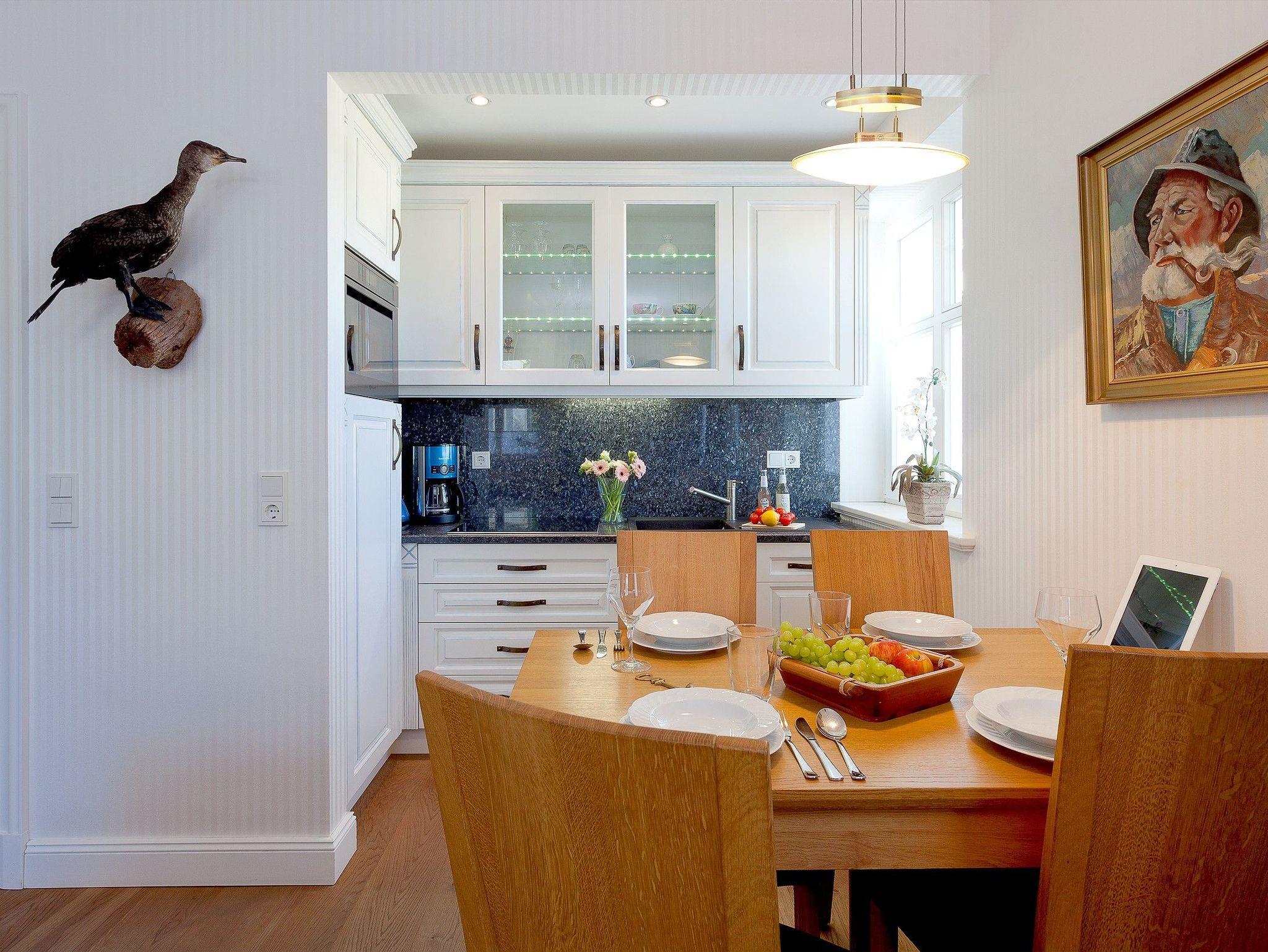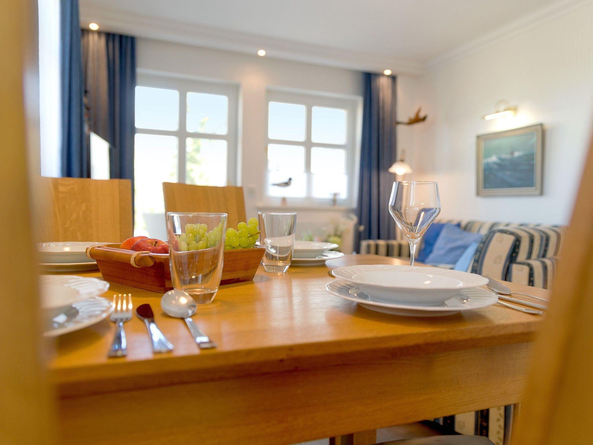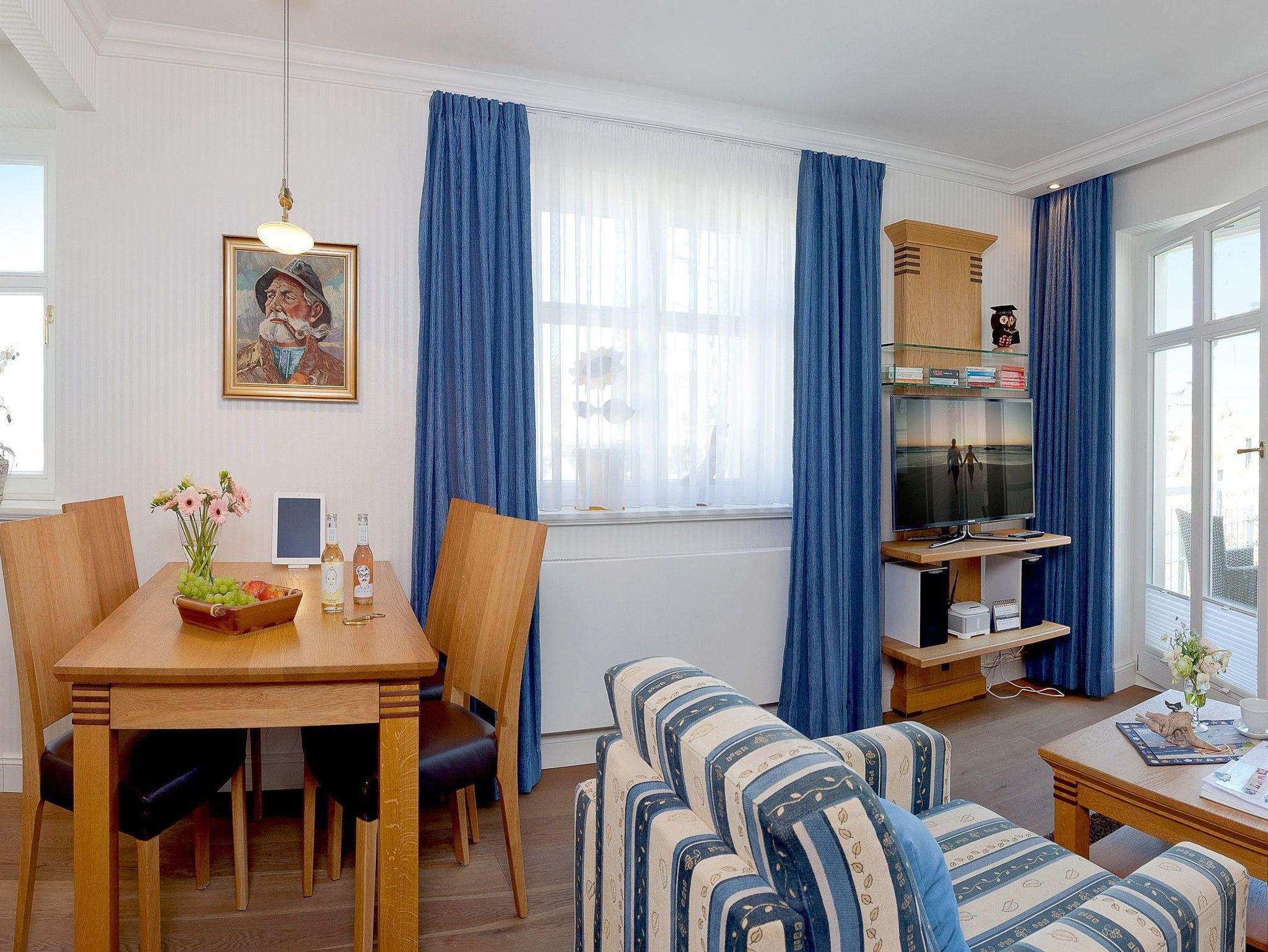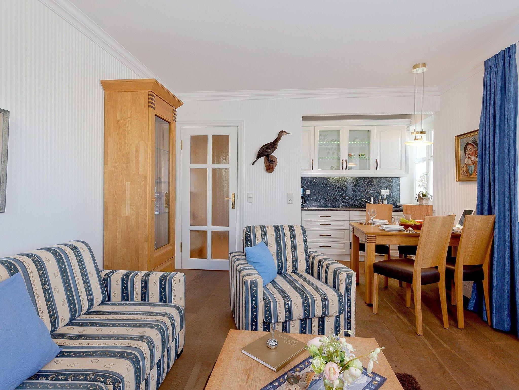 Das Appartement verfügt über einen kombinierten Wohn- Koch- und Essbereich von dem Sie den Balkon Richtung Osten erreichen. Nach erlebnisreichen Ausflügen auf der Insel Usedom bieten Sofa, Sessel und TV Entspannung Pur. Die integrierte hochwertige Küchenzeile (Kühlschrank mit Gefrierfach, Geschirrspüler, Mikrowelle mit Grillfunktion, Wasserkocher, Toaster, Kaffeemaschine), bietet jeglichen Luxus, den Sie sich von einer Küche wünschen.