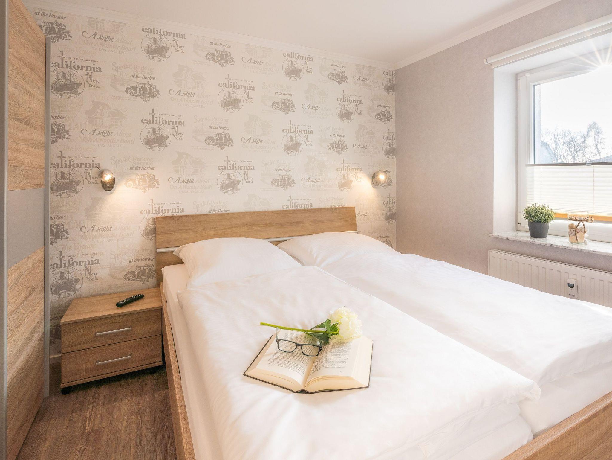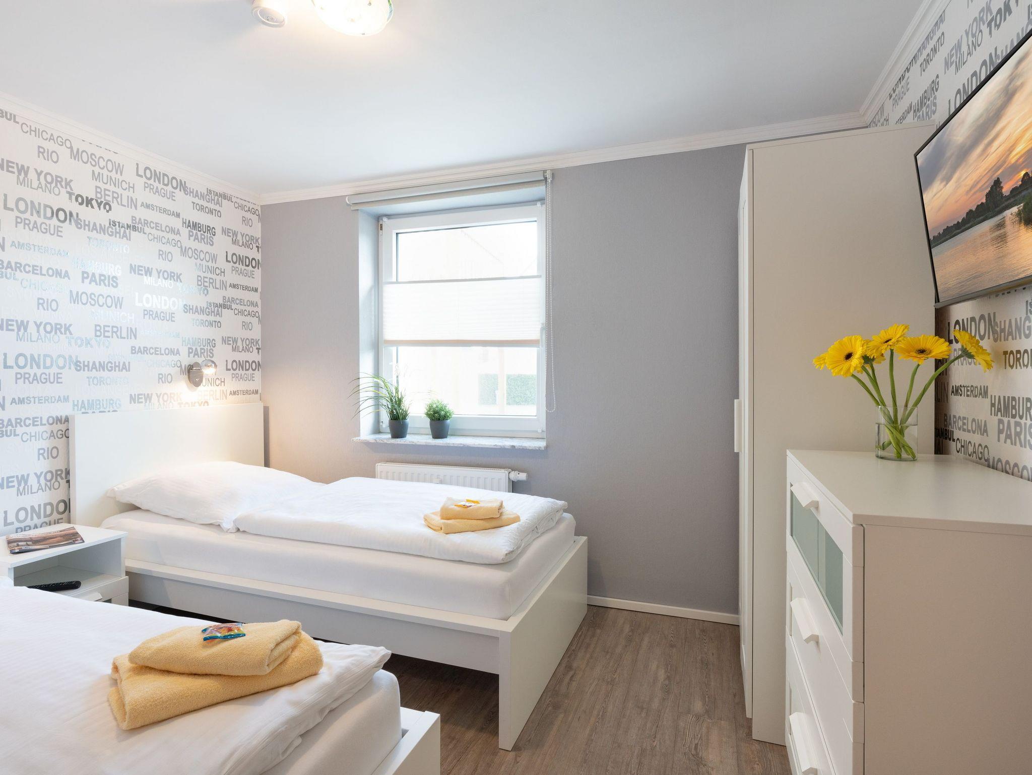 Im ersten Schlafzimmer mit FlatTV lädt ein bequemes Doppelbett (160 x 200cm / zwei getrennte Matratzen) zur Nachtruhe ein. Das zweite Schlafzimmer ist mit zwei Einzelbetten (je 90 x 200cm) ausgestattet, die sich bequem zu einem Doppelbett umstellen lassen.