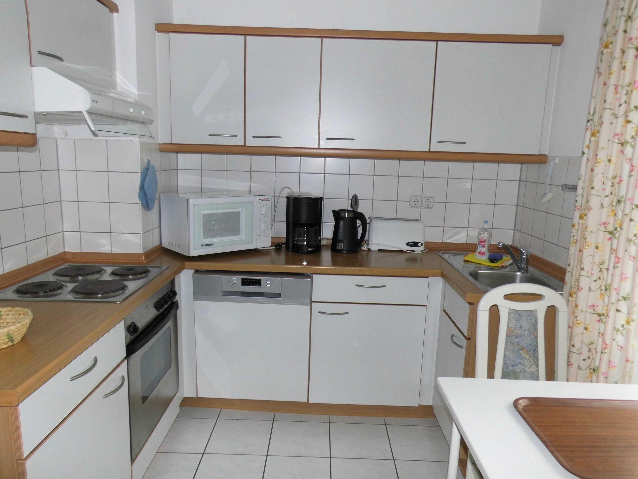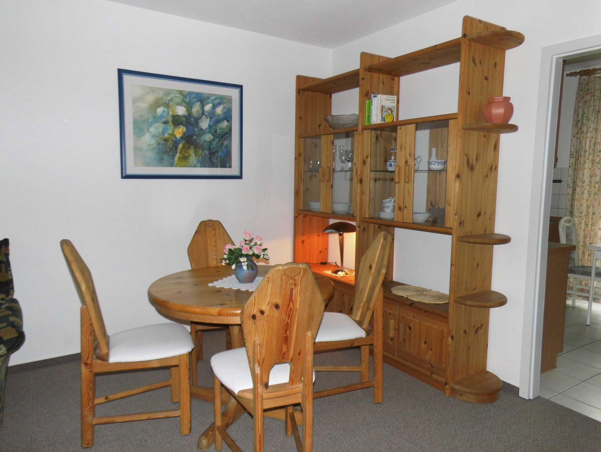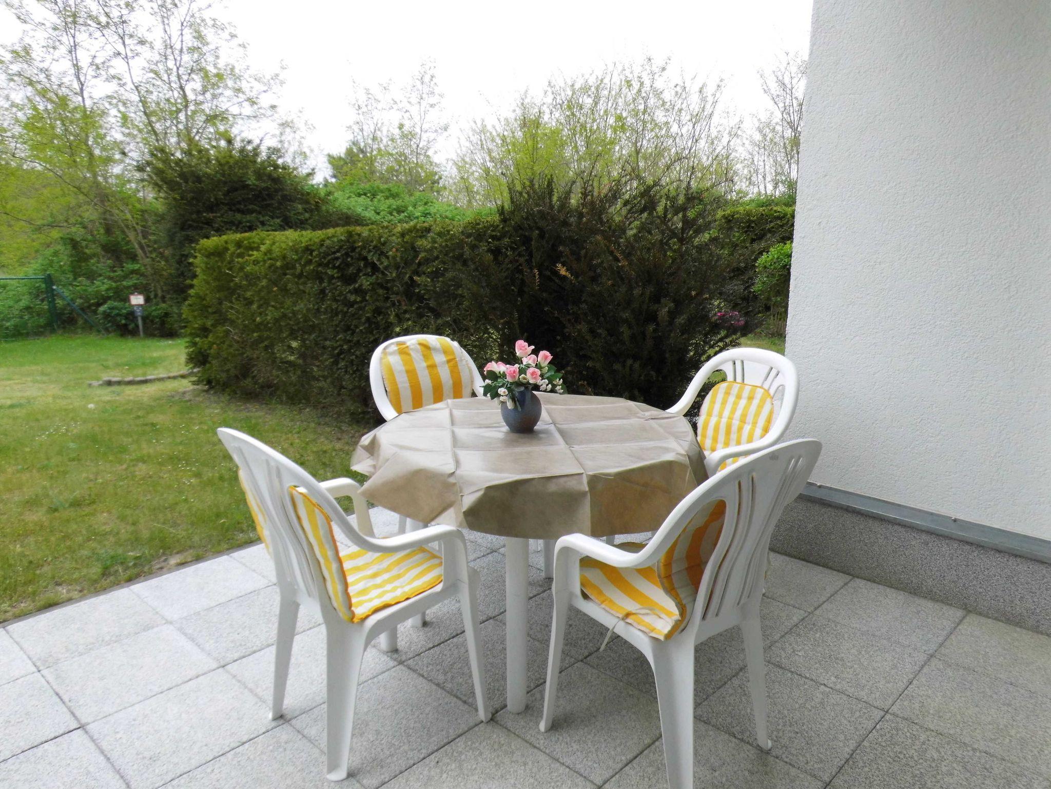 Die Parterre-Wohnung hat eine Terrasse die nach Süden ausgerichtet ist; mit 4 Terrassenstühlen, Tisch und Sonnenschirm. Die Wohnung ist hell und freundlich eingerichtet und verfügt über SAT-TV und Radio. Eine gut ausgestattete Küche mit Geschirrspüler, vollständigem Geschirr, Küchengeräten, Kaffeemaschine, Wasserkocher und Toaster sind vorhanden. Schlafzimmer mit Doppelbett für 2 Personen; Wohnzimmer mit Schlafsofa für 2 Personen; Babyreisebett kann gemietet werden.
