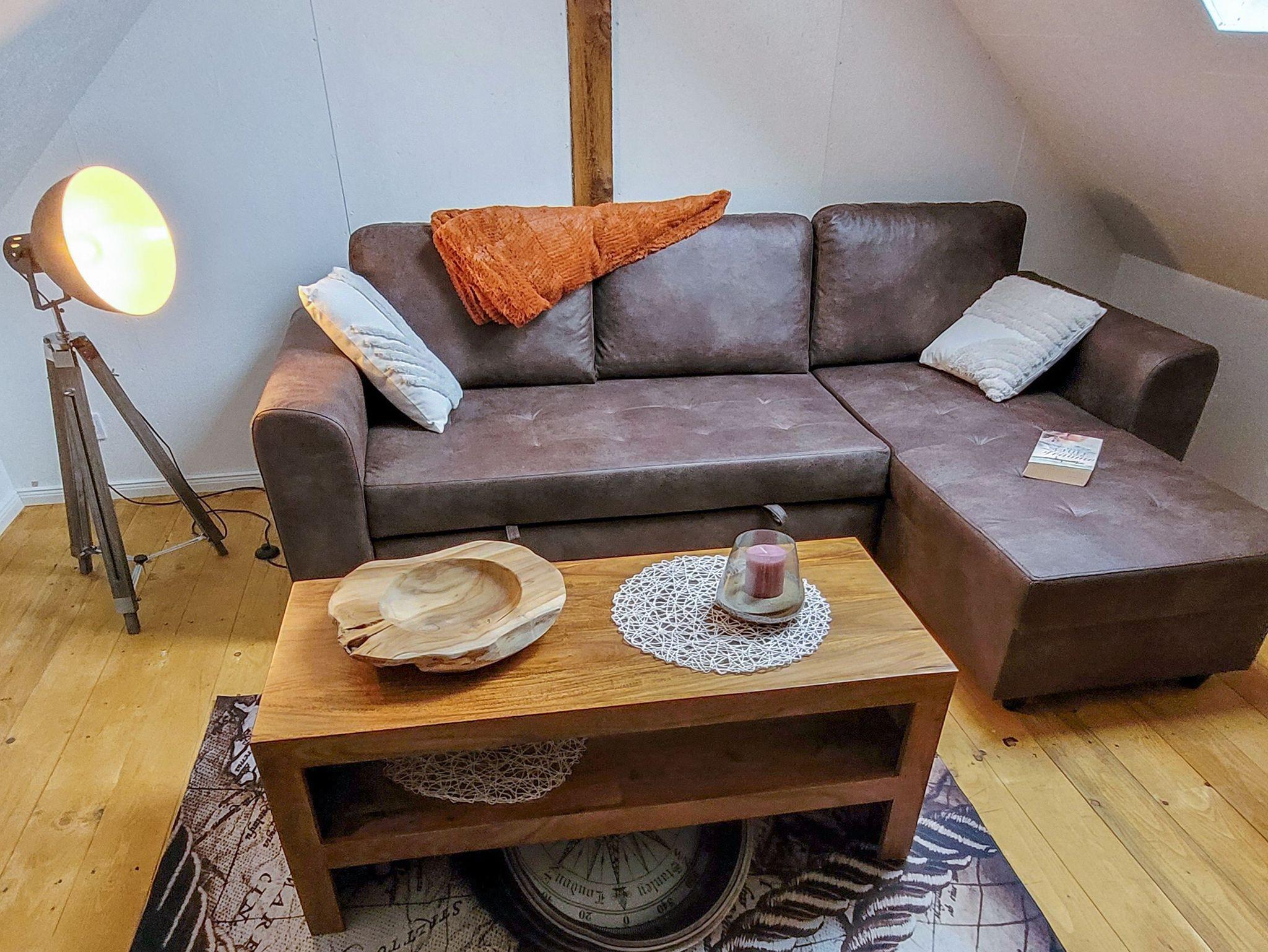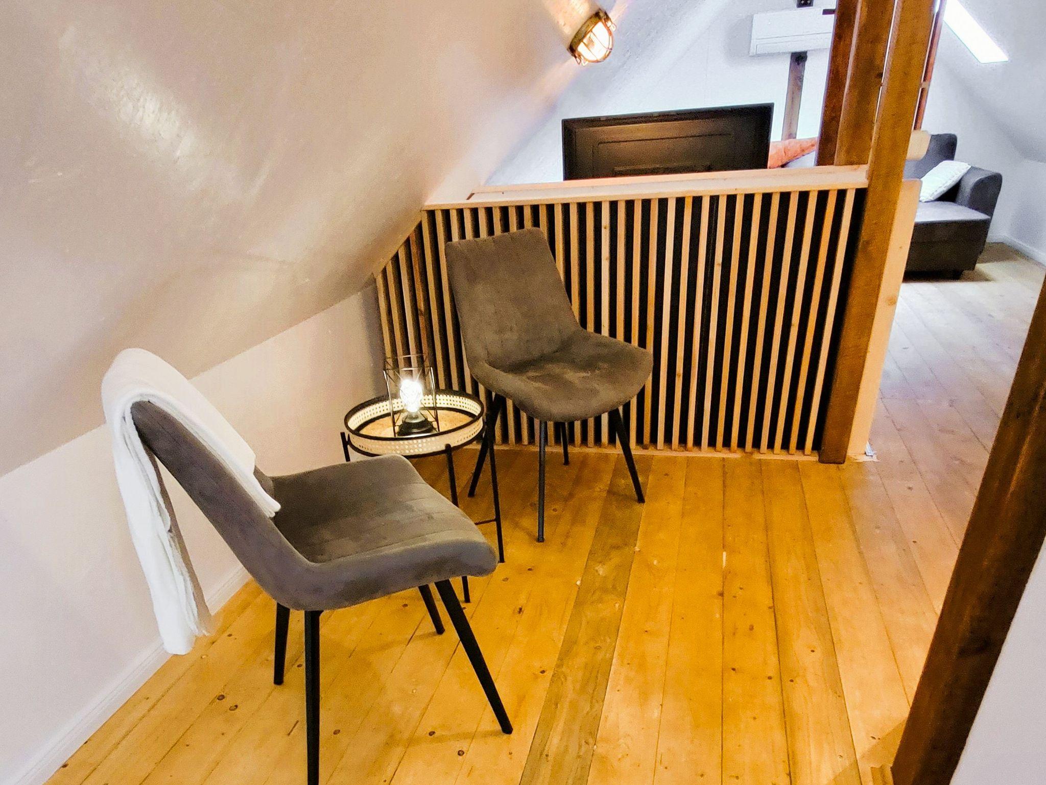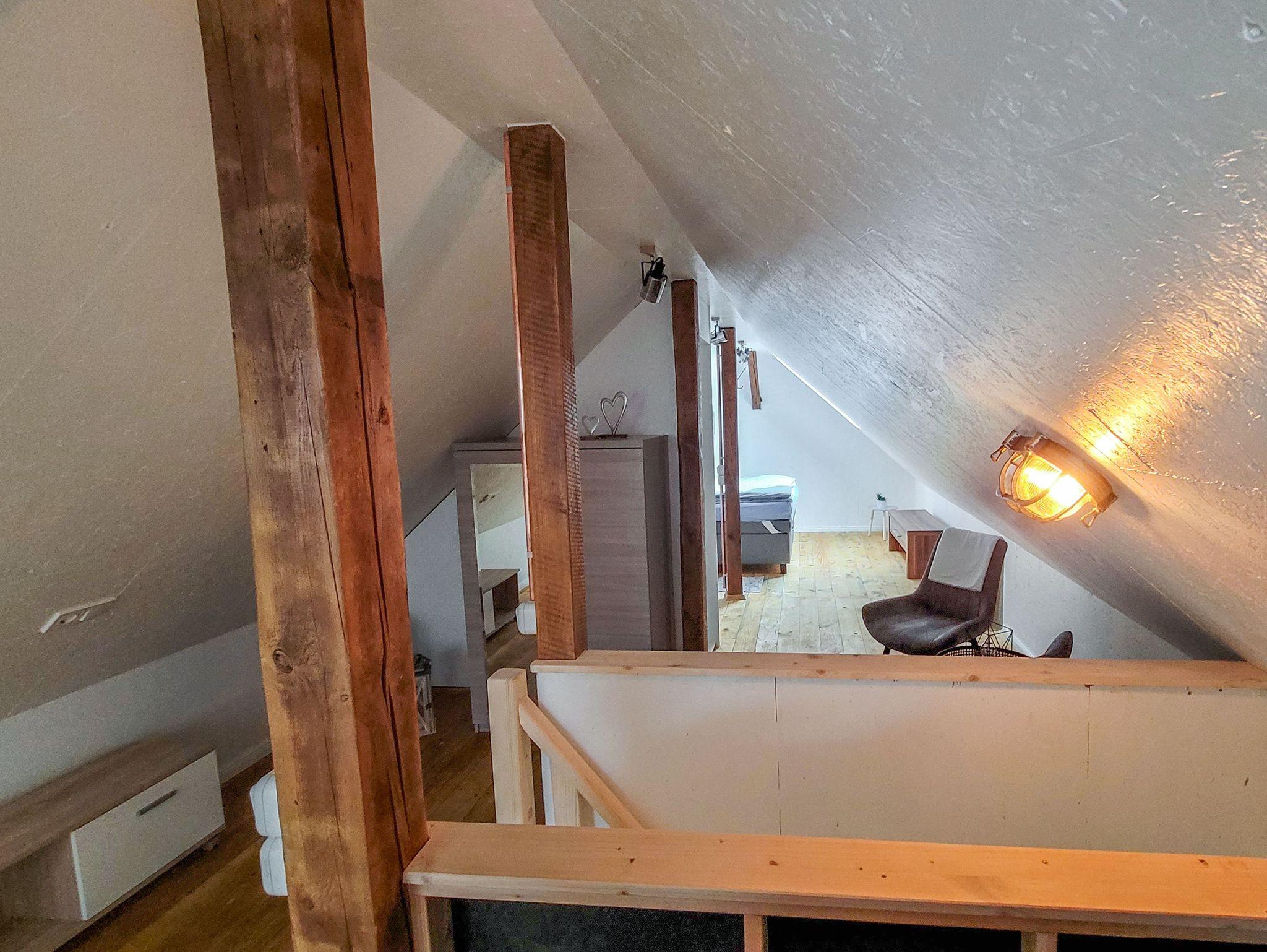 Boje 6 ist eine gemütliche Maisonettewohnung für bis zu 4 Personen, die dir auf zwei Etagen eine charmante Auszeit auf Usedom ermöglicht. Du betrittst die Wohnung über einen kleinen Flur mit Garderobe und Spiegel, von dem aus du in die separate Küche und das Badezimmer gelangst. Die Küche ist funktional ausgestattet mit Kochfeld, Kühlschrank, Pad-Kaffeemaschine, Wasserkocher, Toaster und allem, was du für den kleinen oder großen Hunger brauchst. Am Esstisch kannst du in aller Ruhe frühstücken, den Tag planen oder den Abend bei einem Glas Wein ausklingen lassen. Über eine Treppe gelangst du in das offen geschnittene Dachgeschoss, das durch seine Holzbalken, Schrägen und liebevolle Gestaltung eine besonders einladende Atmosphäre schafft. Im vorderen Teil befindet sich eine gemütliche Sitzecke mit Schlafsofa (140x200) und TV ? perfekt zum Lesen, Entspannen oder als zusätzliche Schlafmöglichkeit. Im hinteren Bereich steht ein Doppelbett (140x200), das dir ruhige Nächte in behaglicher Atmosphäre verspricht. Ein Kleiderschrank bietet ausreichend Stauraum für deine Urlaubsgarderobe. Das helle Bad ist mit einer Dusche und einem WC ausgestattet und bietet dir alles, was du für deine tägliche Wohlfühlroutine brauchst. Draußen erwartet dich eine kleine Terrasse mit Sitzgelegenheit, die perfekt für einen Kaffee in der Morgensonne oder einen entspannten Grillabend geeignet ist. Ein Parkplatz sowie Fahrradständer stehen dir direkt auf dem Grundstück zur Verfügung.