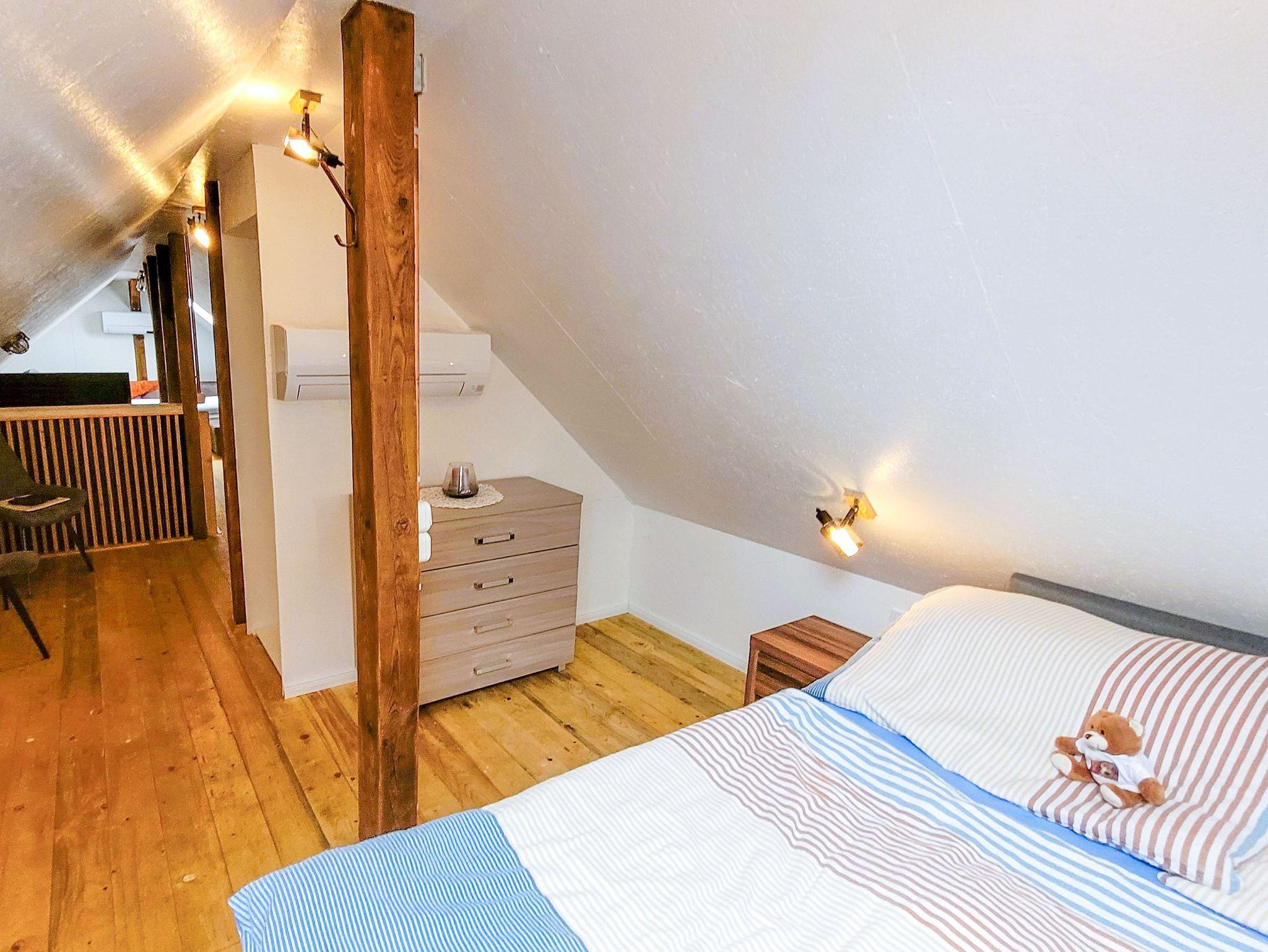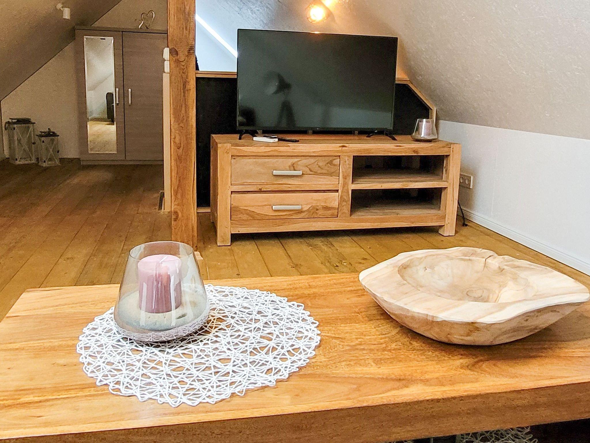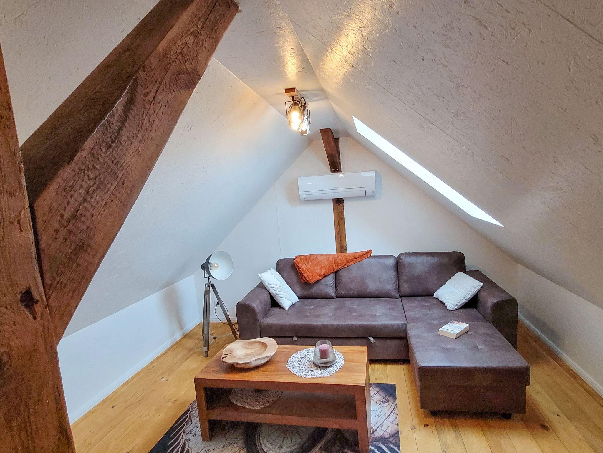 Boje 6 ist eine gemütliche Maisonettewohnung für bis zu 4 Personen, die dir auf zwei Etagen eine charmante Auszeit auf Usedom ermöglicht. Du betrittst die Wohnung über einen kleinen Flur mit Garderobe und Spiegel, von dem aus du in die separate Küche und das Badezimmer gelangst. Die Küche ist funktional ausgestattet mit Kochfeld, Kühlschrank, Pad-Kaffeemaschine, Wasserkocher, Toaster und allem, was du für den kleinen oder großen Hunger brauchst. Am Esstisch kannst du in aller Ruhe frühstücken, den Tag planen oder den Abend bei einem Glas Wein ausklingen lassen. Über eine Treppe gelangst du in das offen geschnittene Dachgeschoss, das durch seine Holzbalken, Schrägen und liebevolle Gestaltung eine besonders einladende Atmosphäre schafft. Im vorderen Teil befindet sich eine gemütliche Sitzecke mit Schlafsofa (140x200) und TV ? perfekt zum Lesen, Entspannen oder als zusätzliche Schlafmöglichkeit. Im hinteren Bereich steht ein Doppelbett (140x200), das dir ruhige Nächte in behaglicher Atmosphäre verspricht. Ein Kleiderschrank bietet ausreichend Stauraum für deine Urlaubsgarderobe. Das helle Bad ist mit einer Dusche und einem WC ausgestattet und bietet dir alles, was du für deine tägliche Wohlfühlroutine brauchst. Draußen erwartet dich eine kleine Terrasse mit Sitzgelegenheit, die perfekt für einen Kaffee in der Morgensonne oder einen entspannten Grillabend geeignet ist. Ein Parkplatz sowie Fahrradständer stehen dir direkt auf dem Grundstück zur Verfügung.