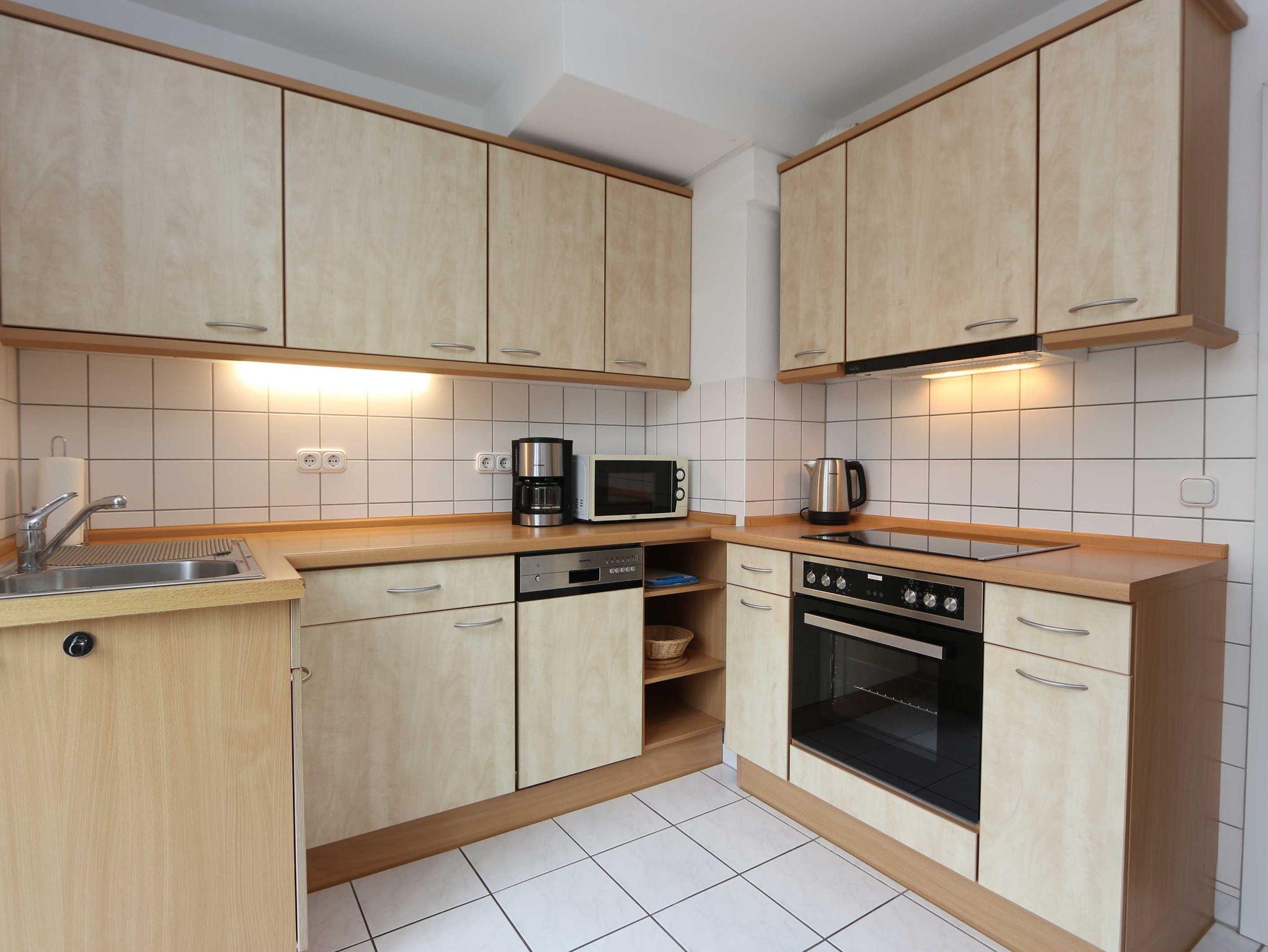 • Die Küche verfügt über eine Einbauküche inkl. Herd, Glaskeramikkochfeld, Spülmaschine, Eierkocher, Toaster, Filterkaffeemaschine sowie einer Nespressomaschine , Wasserkocher, Kühlschrank, Mikrowelle und reichlich Geschirr.