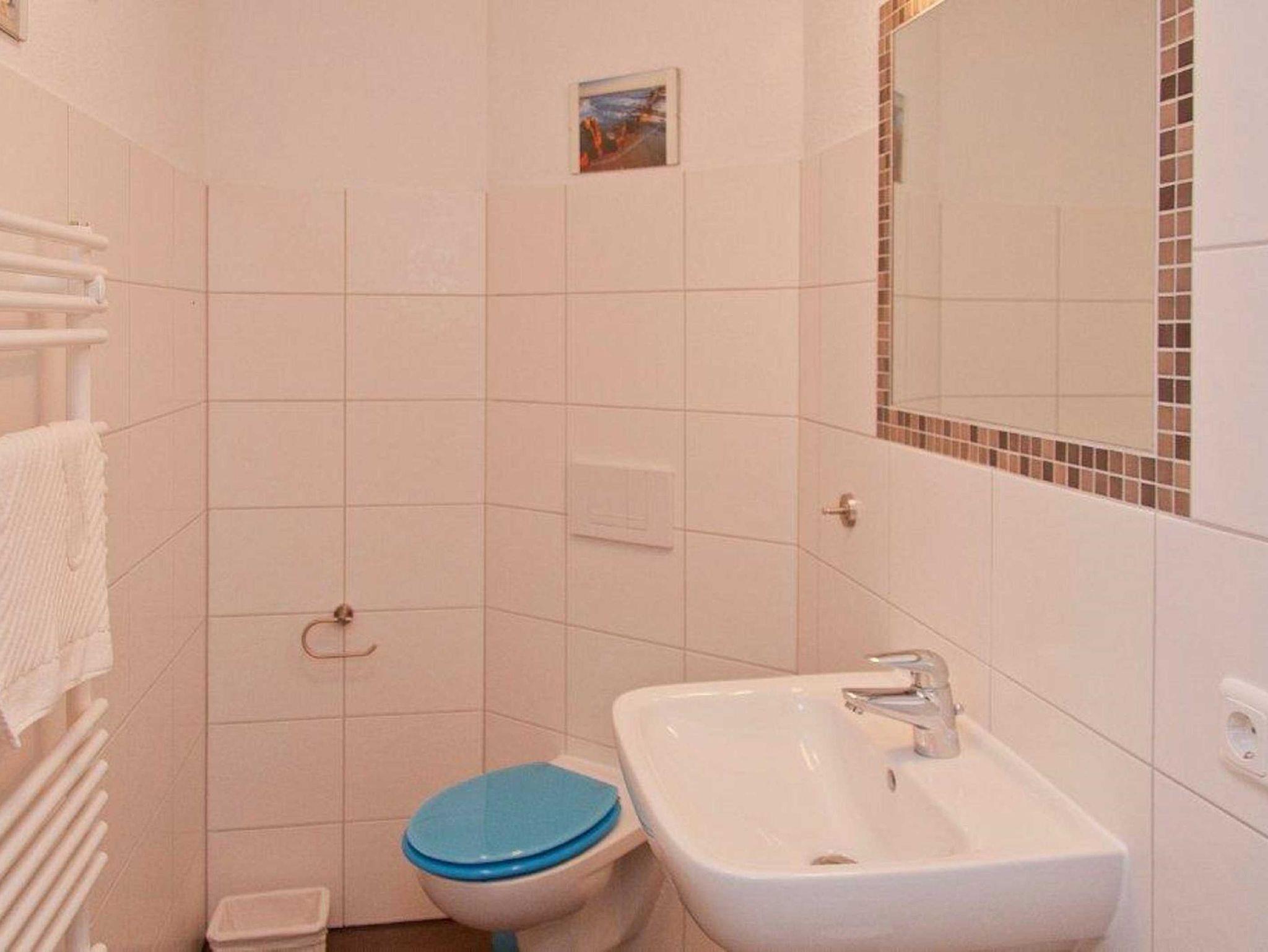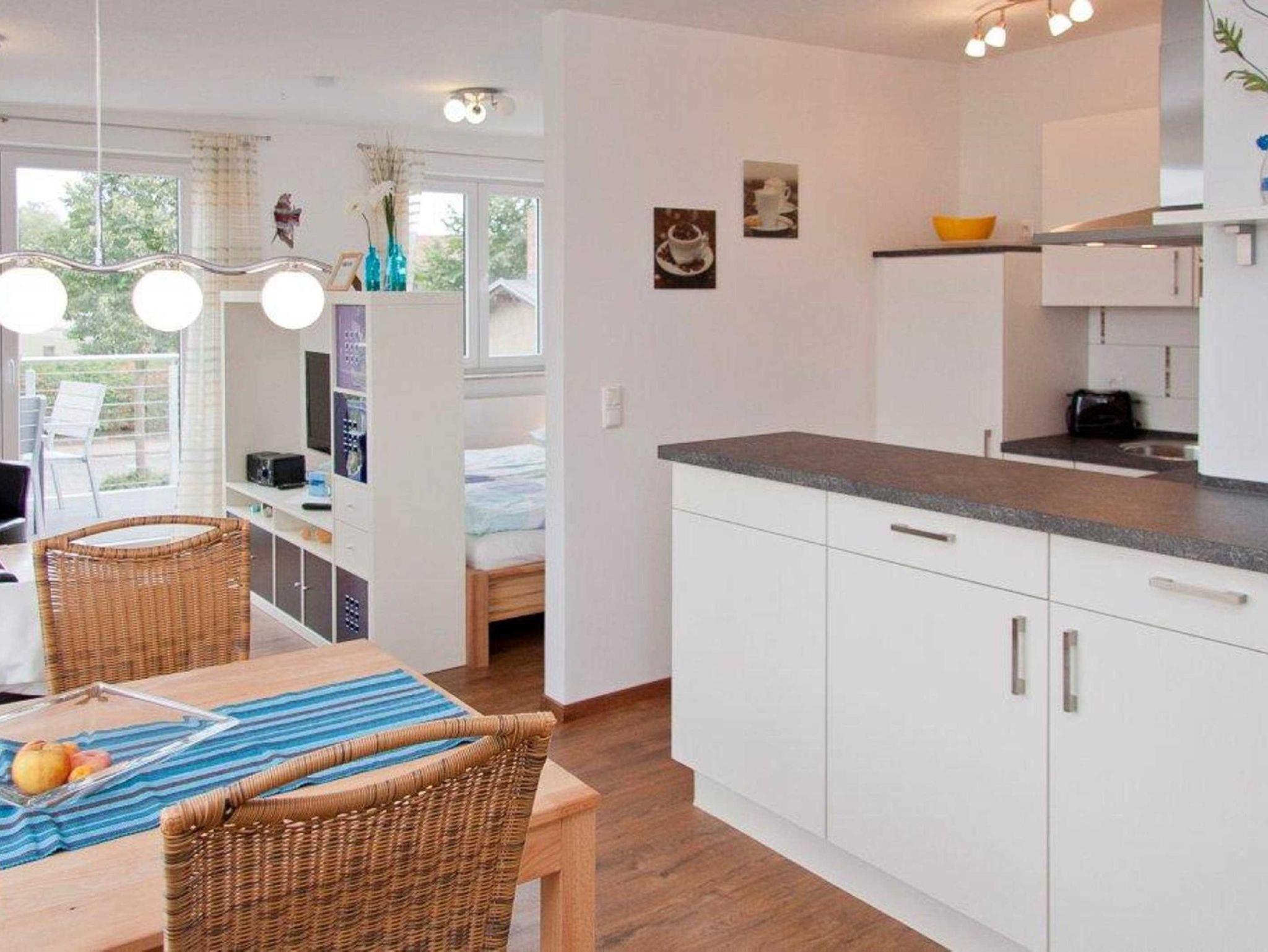 Nichtraucher-Ferienwohnung für max. vier Personen mit 69 qm. Die Wohnung ist modern und stilvoll nach dem Element Luft in gehobener Qualität eingerichtet und verfügt über ein lichtdurchflutetes Wohn-/ Schlafzimmer mit Ledercouch und Sesseln und einem Doppelbett, das zum Wohlfühlen einlädt. Die offene Einbauküche ist voll ausgestattet (Herd/Backofen, Spülmaschine, Kühlschrank, Gefrierschrank, Kaffeemaschine, Toaster, Wasserkocher, ausreichend Geschirr) und mit einem schönen Esstisch/Stühle komplett. Sie finden ein Bad mit ebenerdiger Dusche und Glastrennwand/ Waschtisch und ein separates WC mit Waschtisch vor. Ein zweites Schlafzimmer ist ausgestattet mit Boxspringbetten, die variabel als Doppelbett oder als zwei Einzelbetten nutzbar sind. Die Bettwäsche, Handtücher, Badematte und Geschirrtücher sind für den Aufenthalt inklusive. Die Obergeschosswohnung hat einen Balkon mit Gartenmöbeln zur Straßenseite raus. Im Garten erwartet sie ein Bereich mit festem Grill, Gartenmöbeln, Sandkasten mit Spielzeugen zum gemütlichen Beisammensein und Erholen. Ein abschließbarer Fahrradschuppen mit Steckdosen zum Aufladen der E-Bike steht zur Verfügung. Für jede Wohnung ist ein ausgeschilderter PKW-Parkplatz vorhanden.