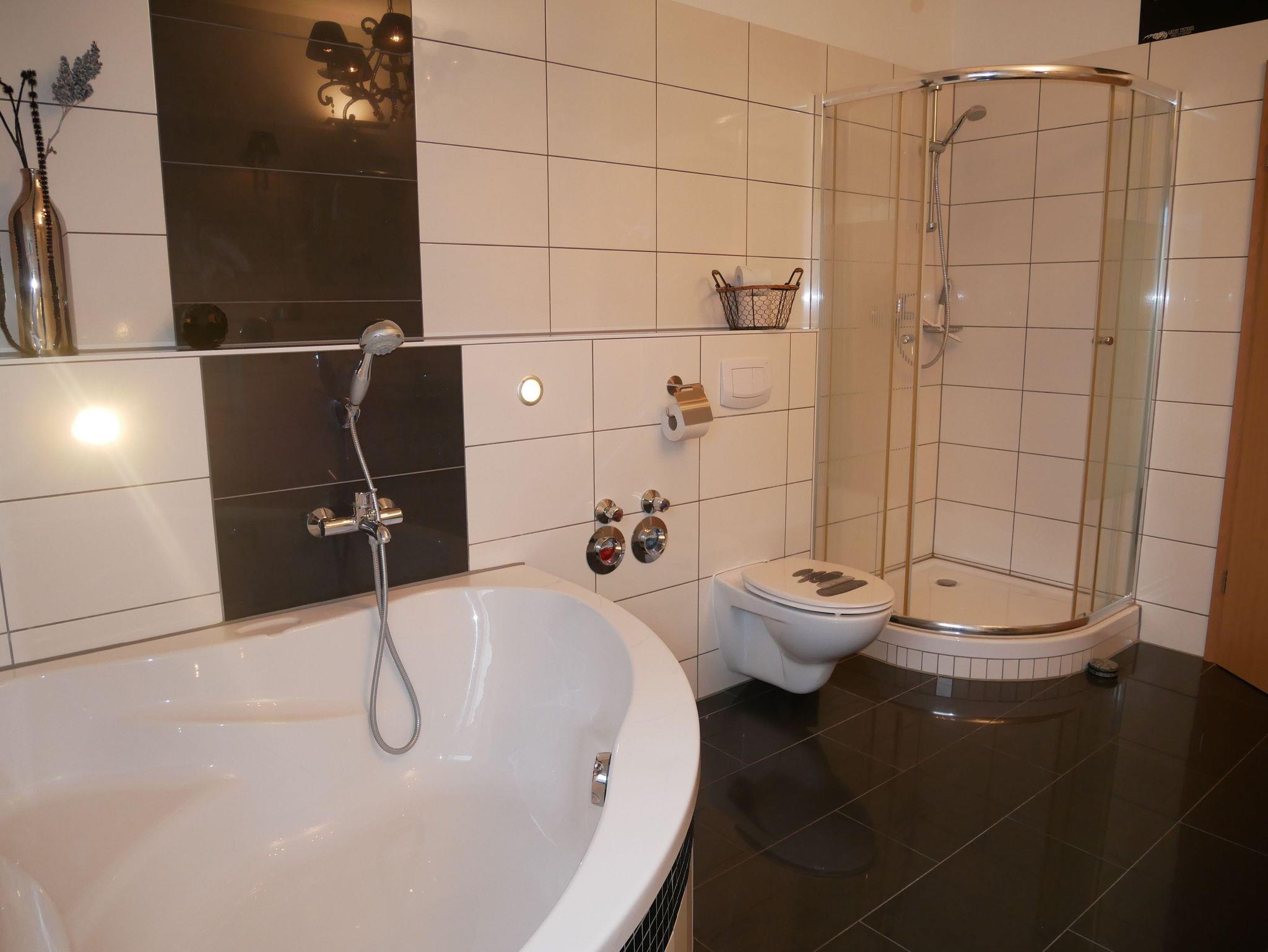 Die großzügige 100m² große 3-Raum-Ferienwohnung befindet sich im ersten Obergeschoss einer Licht- und Designfirma (keine Lärmbelästigung). Die Ferienwohnung ist luxuriös eingerichtet und verfügt über eine moderne Lichtsteuerung. Es gibt ein großes Schlafzimmer mit Doppelbett und ein kleineres Schlafzimmer mit einem schmalen Doppelbett (1,40m), sowie ein getrennt stehendes Einzelbett. Eine große komplett ausgestattete Küche mit Ceranfeld, Backofen, Kühlschrank mit Gefrierfach, Spülmaschine, Mikrowelle, Toaster, Kaffeemaschine, Wasserkocher und einem Essplatz für 6 Personen, fügt sich in das große, freundliche Wohnzimmer mit einem Elektrokamin und einer gemütlichen Ledersitzgarnitur mit Schlafmöglichkeit für die sechste Person ein. Das großzügige, edle Bad ist mit Eckbadewanne, separater Dusche und WC ausgestattet.