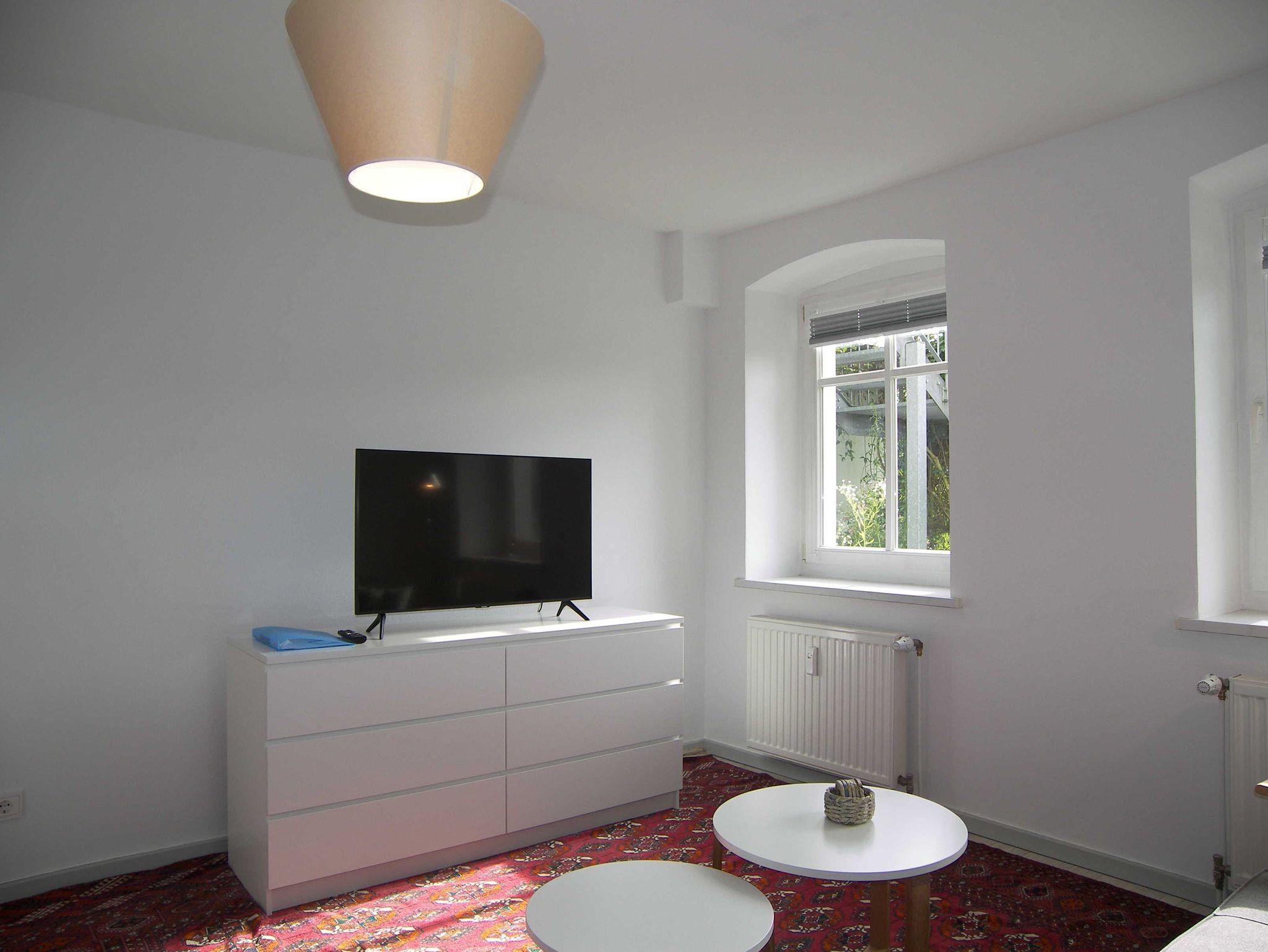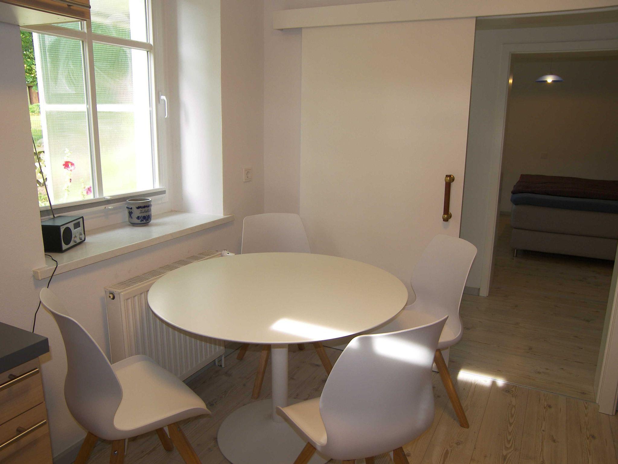 Die 58 qm große Ferienwohnung verfügt über ein Schlafzimmer mit Doppelbett, ein geräumiges, barrierefreies Duschbad mit Waschmaschine und eine wohnliche, vollausgestattete Küche mit Essecke. Im Wohnzimmer befinden sich neben der Schlafcouch (Aufbettungsmöglichkeit für die 3. und 4. Person), ein geräumiges Sideboard als Fernsehecke. Das Wohnzimmer kann durch eine Schiebetür zum Flur abgetrennt werden. Die Wohnung verfügt über einen Außen Sitzplatz im Garten mit Gartenmöbeln. WLAN steht Ihnen kostenfrei zur Verfügung.