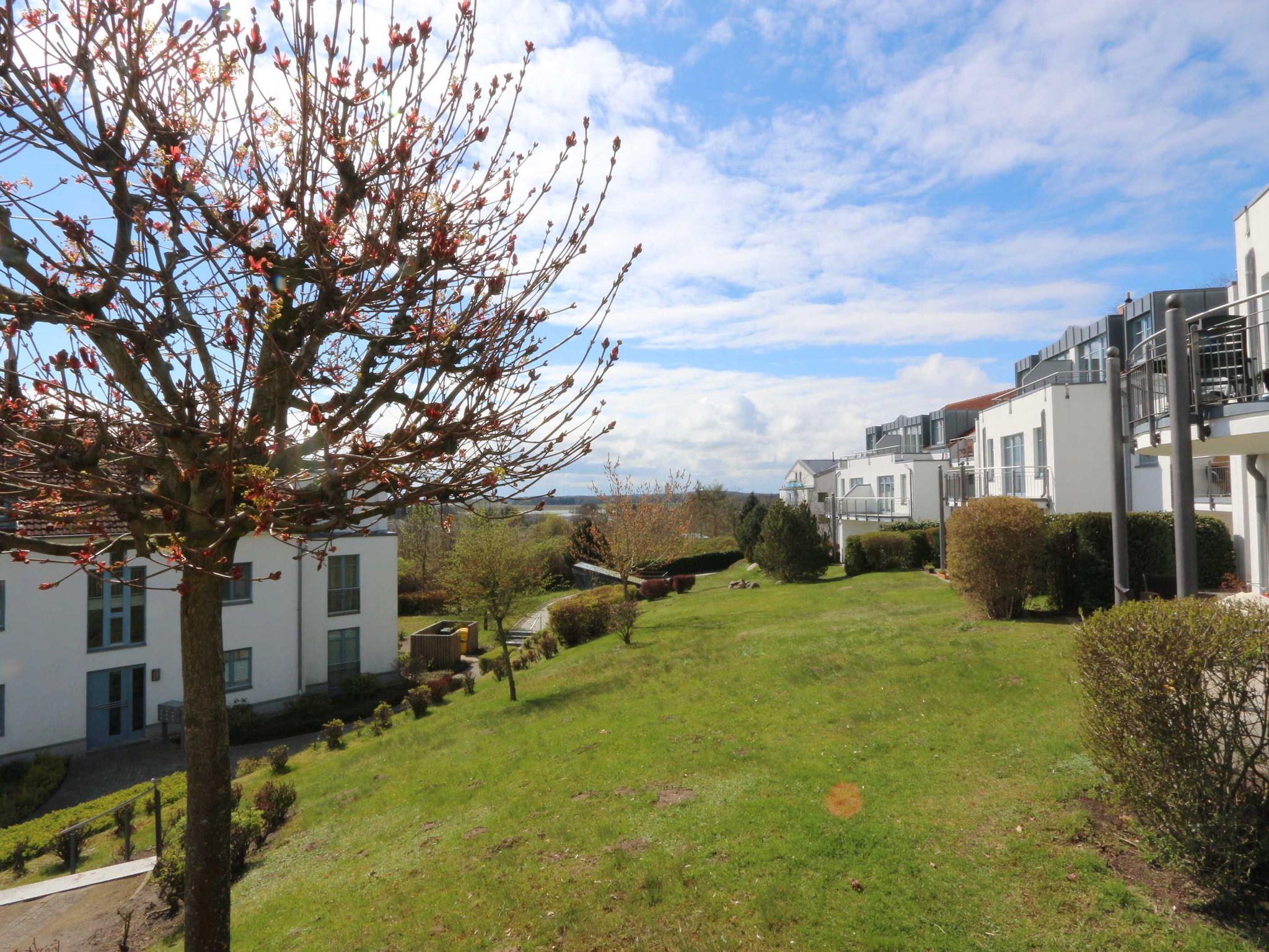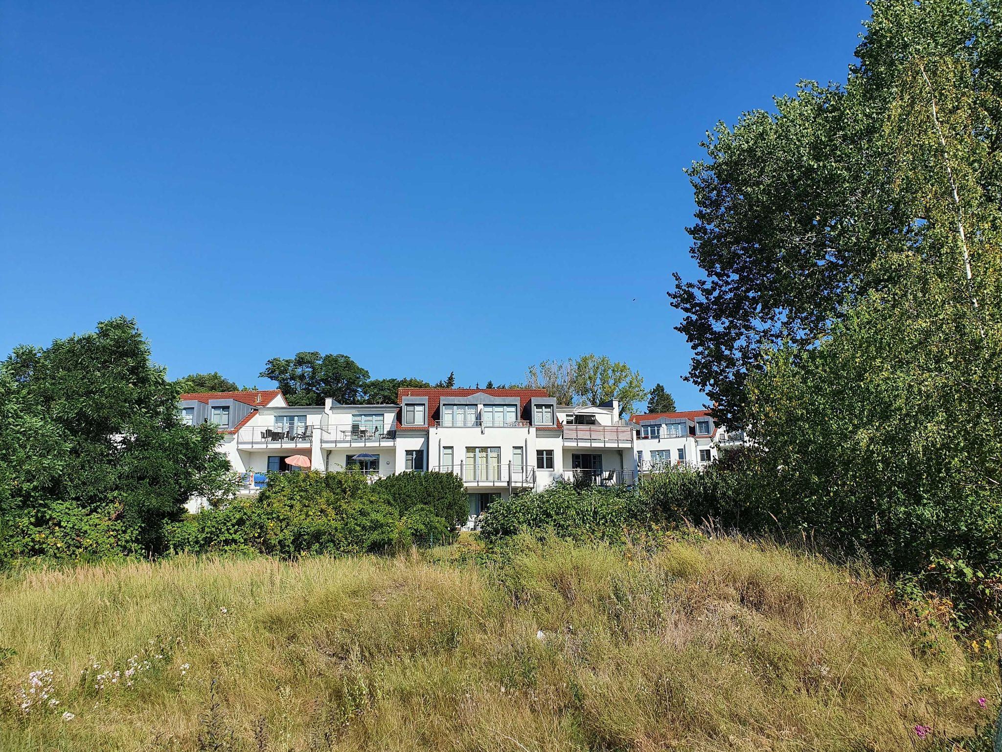 Die komfortable 2-Zimmer-Ferienwohnung (Wohnung 49) befindet sich im 1. Obergeschoß der Residenz Bellevue in 17454 Zinnowitz, Heimweg 13 und bietet einen schönen Blick auf das Umfeld und die Landschaft, mit Wald und Achterwasser. Hier können Sie einen herrlichen und weitläufigen Blick genießen.