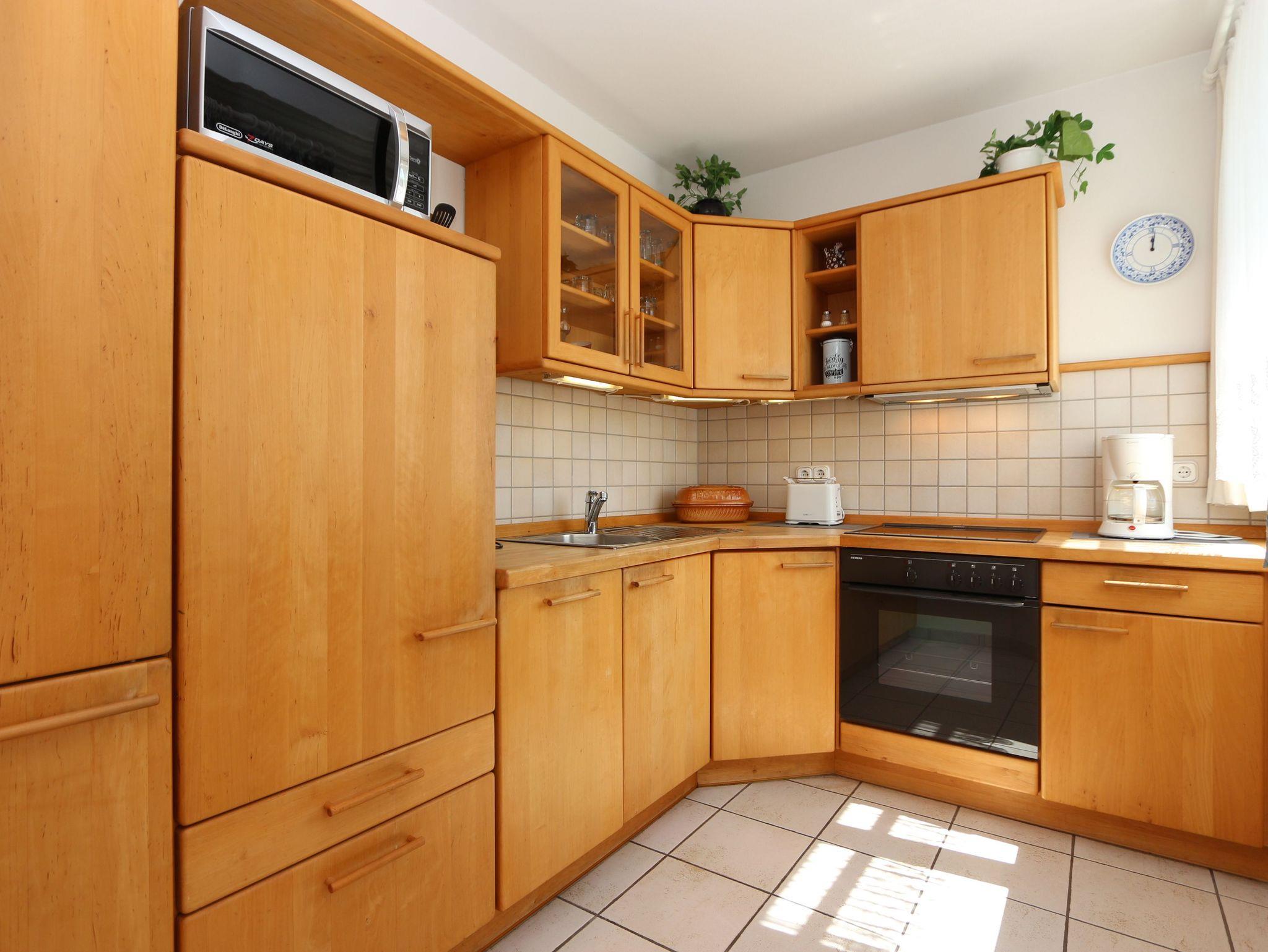• Küche mit Einbauküche inkl. Herd, Mikrowelle, Eierkocher, Toaster, Spülmaschine, Wasserkocher, Kühlschrank und reichlich Geschirr.