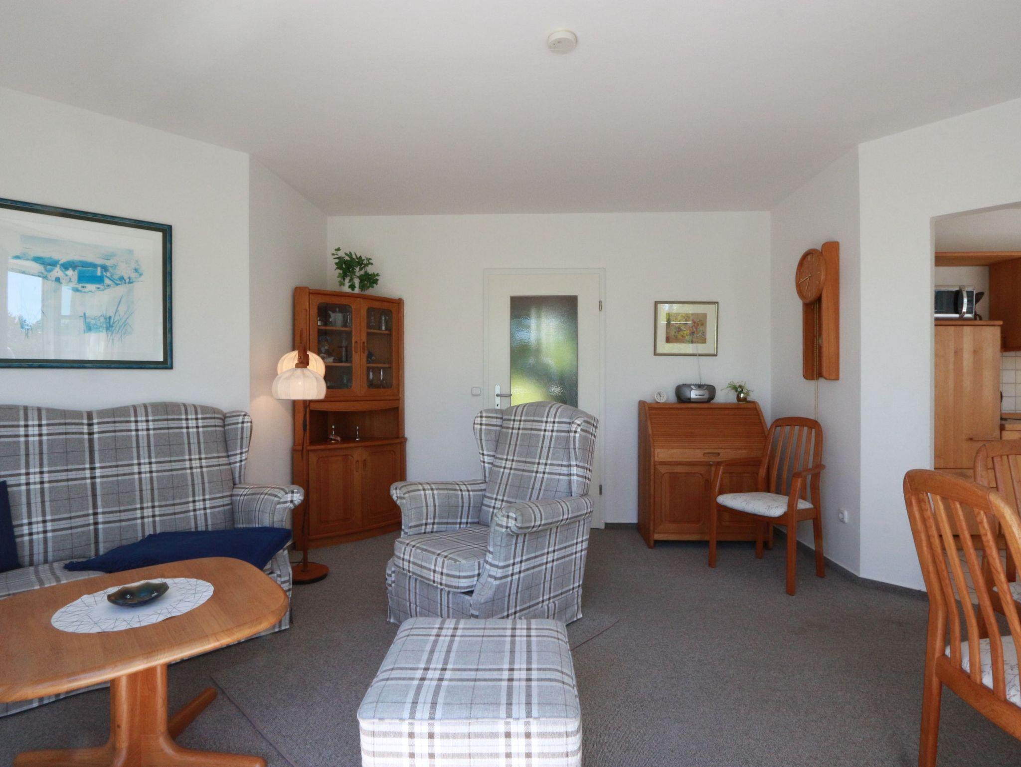 • Im Wohnzimmer befinden sich ein Flachbildfernseher (Sat-TV).