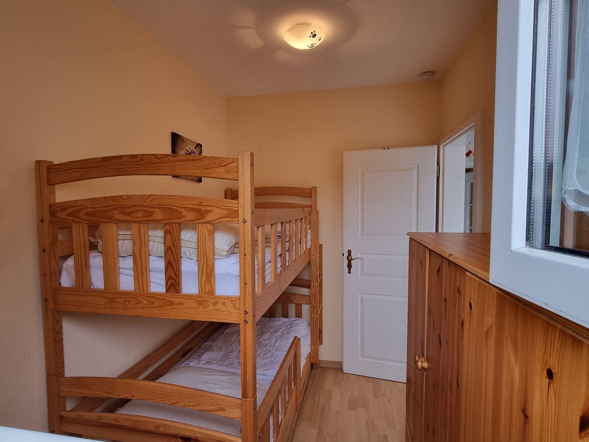 1 Schlafzimmer mit Schrank & Etagenbett je 0.90*2.00m