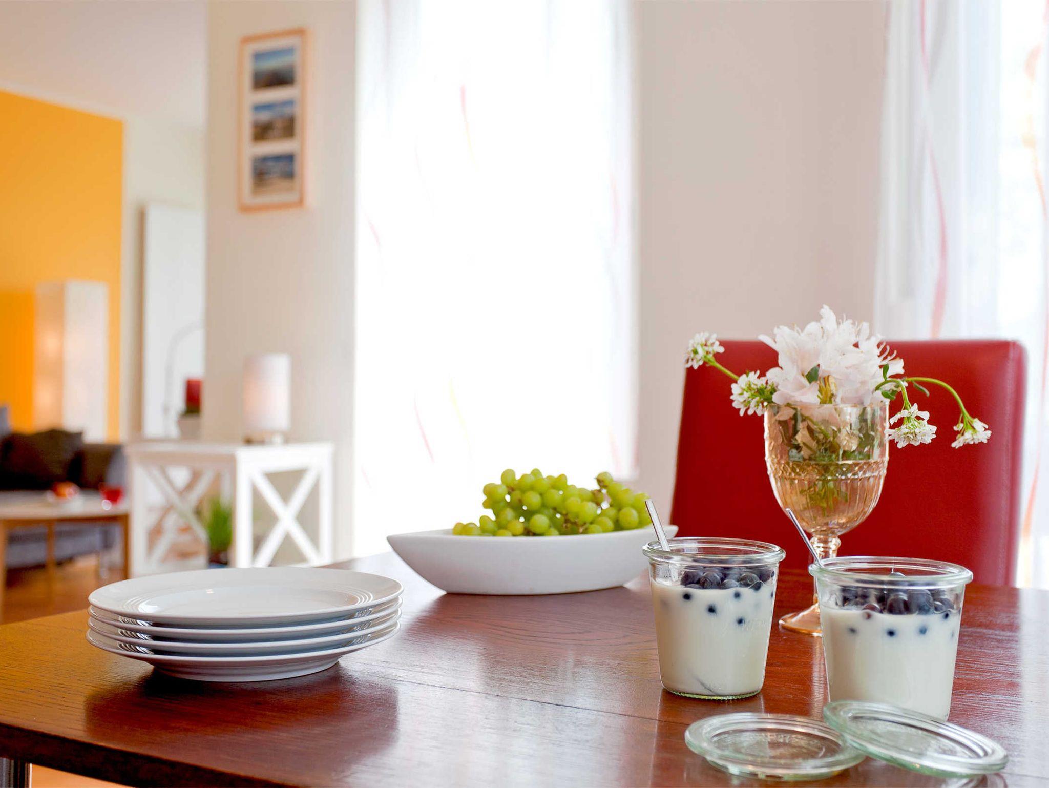 Die hell und gemütlich eingerichtete Wohnung Strandläufer kann bis zu 4 Personen beherbergen. Auf 57 m² bieten wir Ihnen zwei Schlafzimmer, eine Wohnküche, ein Bad mit Dusche und eine Terrasse.