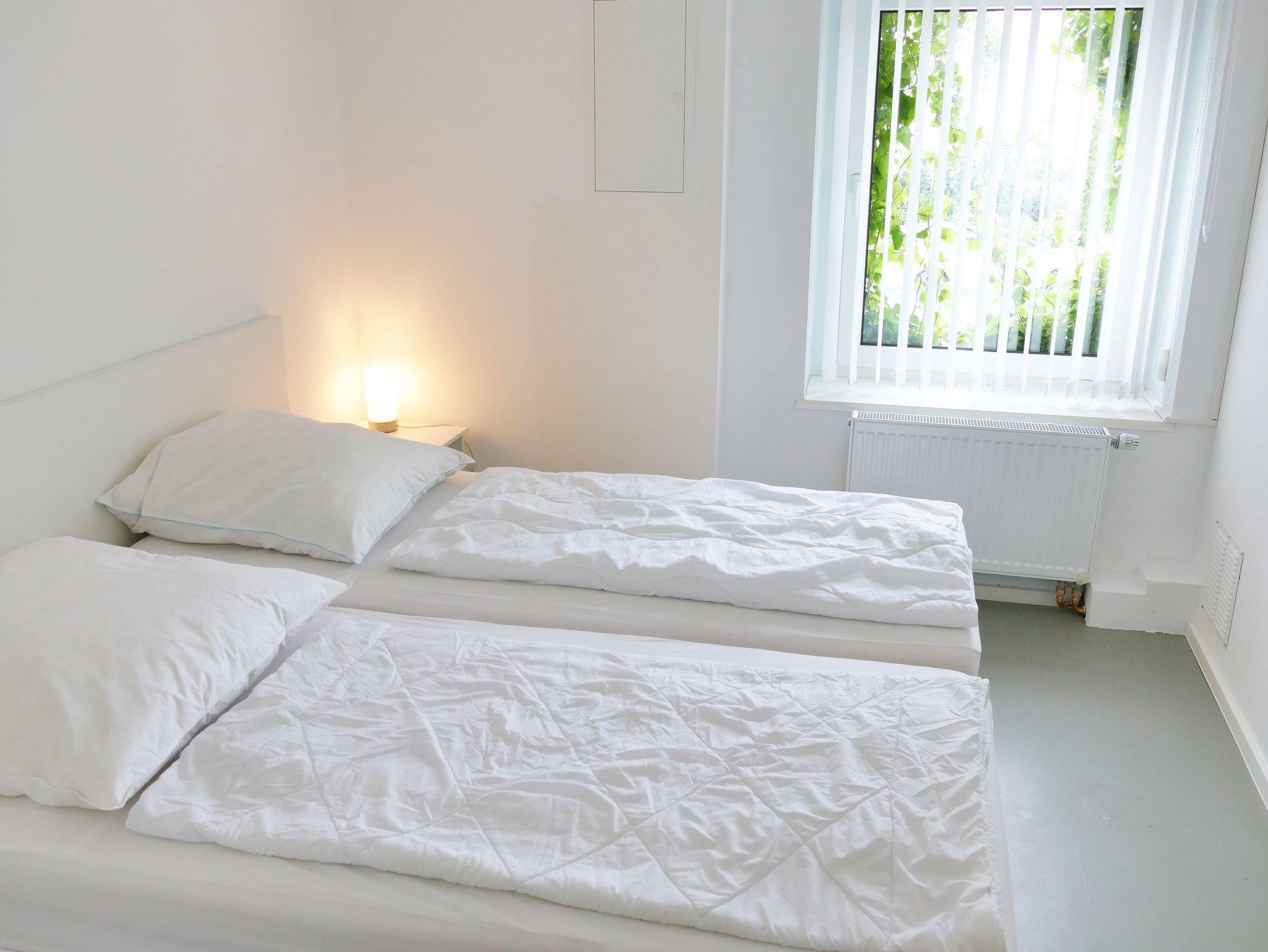 Der erste Schlafzimmer verfügt über ein Doppelbett, das zweite Schlafzimmer über ein französisches Bett, TV und Sitzplatz, das dritte Schlafzimmer ist mit einem Doppelbett und einem Sitzbereich ausgestattet. Desweiteren befinden sich in der Wohnung zwei Bäder, jeweils mit Dusche und WC.