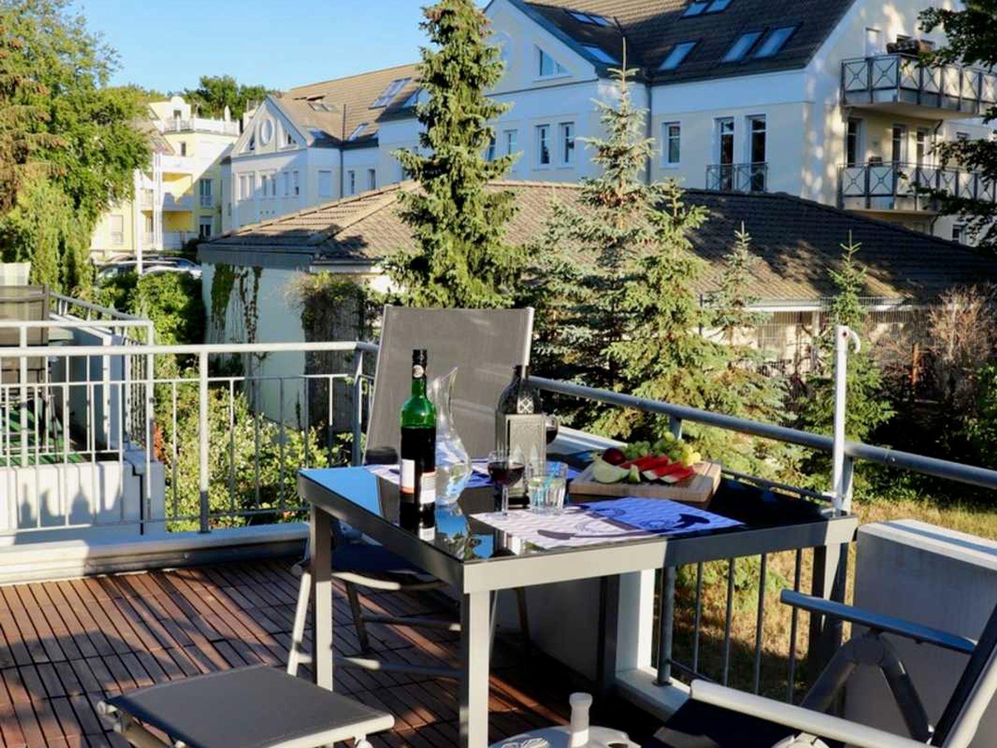 Die liebevoll und hochwertig eingerichtete Ferienwohnung Dünennest mit separater Schlafzimmer, voll ausgestatteter moderner Einbauku¨che, einem großzügigen Bad sowie einem attraktiven Wohnbereich liegt nur 100 Meter vom wunderscho¨nen Strand von Zinnowitz, unmittelbar an der Seebrücke, entfernt.Durch die zentrale Lage erreichen Sie in wenigen Fußschritten neben Strand und Promenade viele Restaurants, Cafés und Einkaufsmöglichkeiten. Die Ferienwohnung bietet Ihnen eine wunderbare Ausgangslage für alle Aktivita¨ten in Zinnowitz und Umgebung. Zugleich lockt die Ferienwohnung auch Ruhesuchende an. Der Blick aus den Fenstern und vom Balkon geht ins Grüne. Der großzügige Südbalkon mit einem Esstisch, 3 verstellbaren Aluminiumstühlen und einem Fußhocker lädt zum Genießen eines ausgiebiges Frühstück, einem Glas Wein beim Sonnenuntergang oder einem angenehmen Sonnenbad ein.