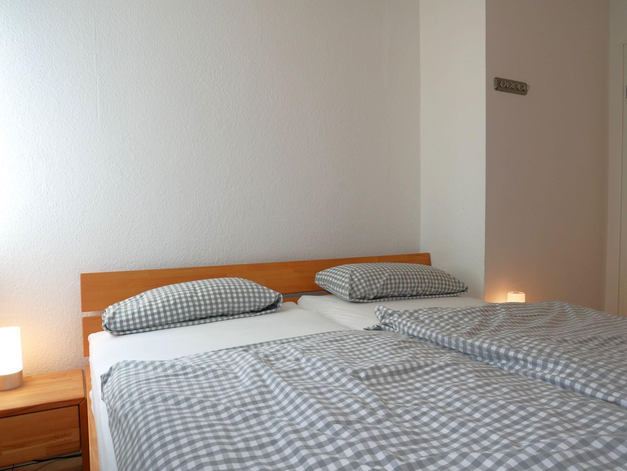 Die beiden Schlafzimmer sind jeweils mit einem Doppelbett ausgestattet. Zur Wohnung gehören zwei Bäder, die jeweils mit einer Dusche und einem Schminkspiegel ausgestattet sind. Ein Fön ist ebenfalls vorhanden.