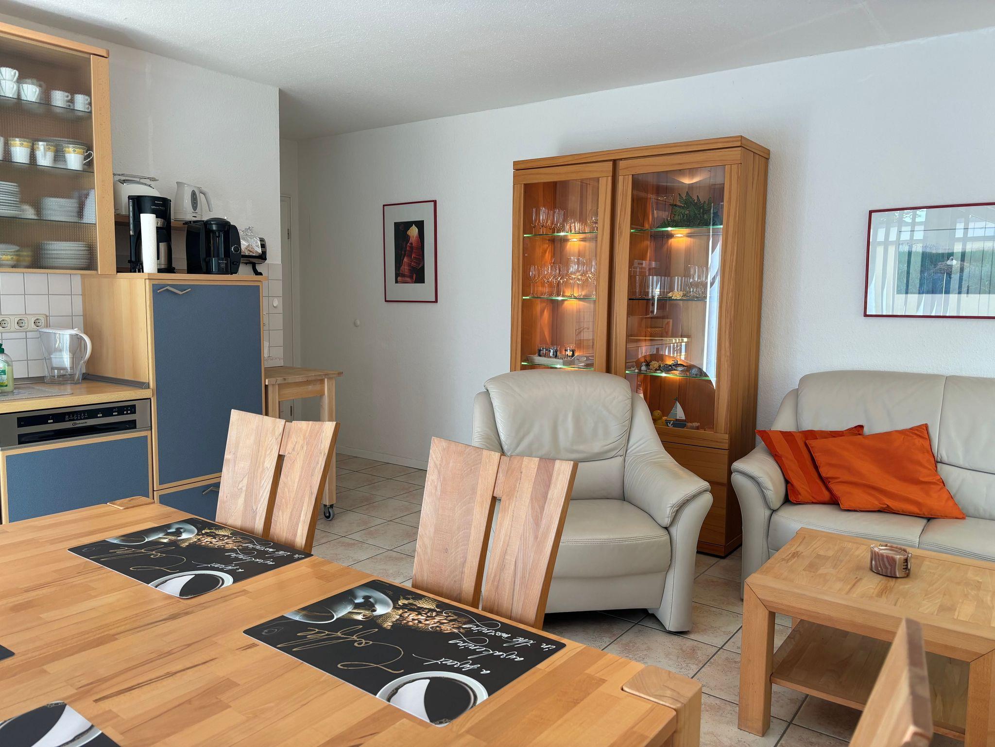 Die 3-Raum-Nichtraucher-Ferienwohnung ist ca. 60m² groß und allergikergerecht eingerichtet, komplett gefliest und mit hochwertigen Buche-Vollholzmöbeln ausgestattet.
