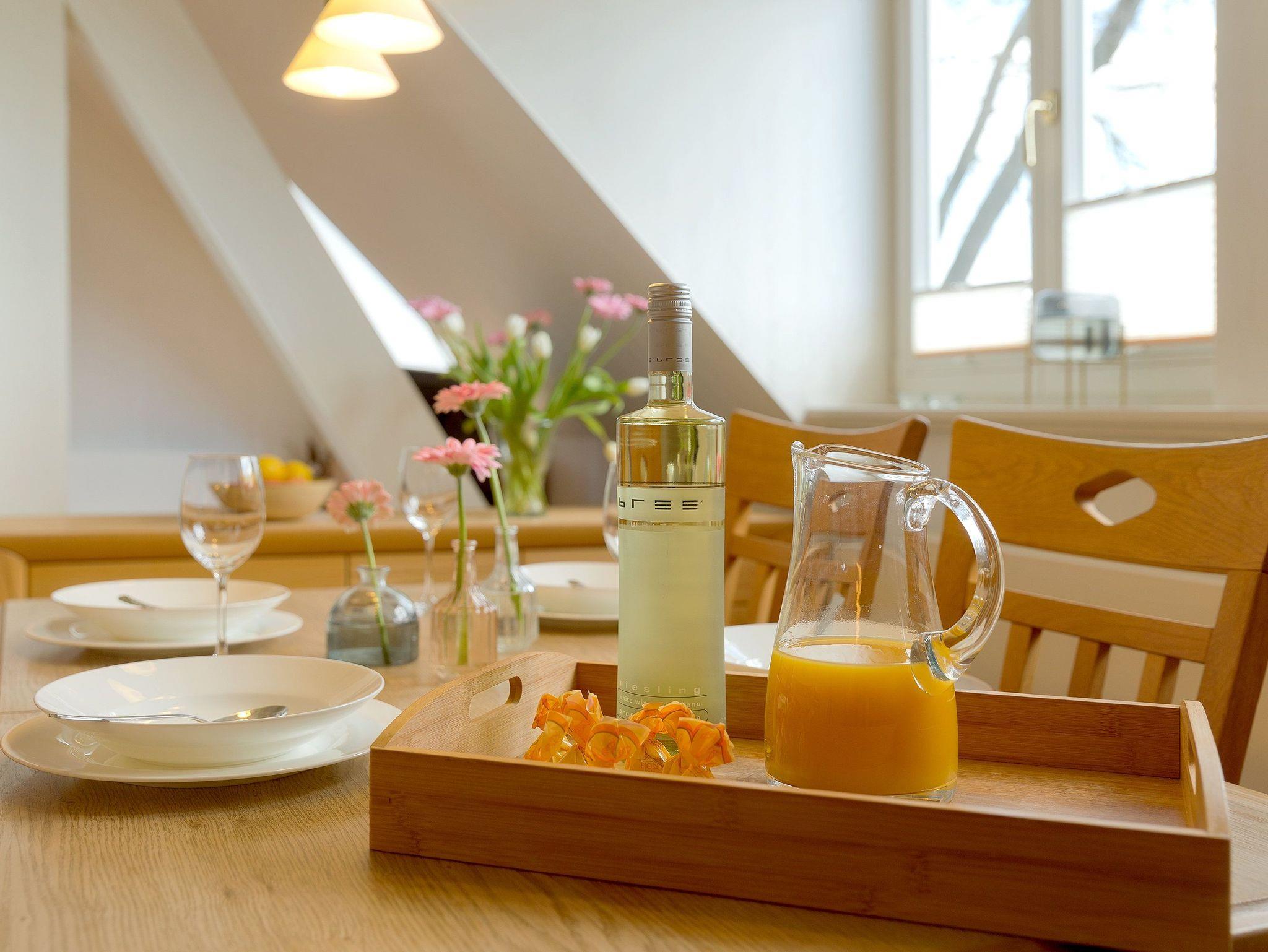 Ein Parkplatz direkt am Haus, Nutzung des Saunabereiches, ein gemeinschaftlicher Fahrradabstellraum sowie ein WLAN-Zugang stehen kostenfrei während Ihrer Urlaubszeit mit zur Verfügung und runden den Urlaubskomfort dieses Appartements ab. Waschmaschine und Trockner im Haus sind gegen eine Gebühr nutzbar.