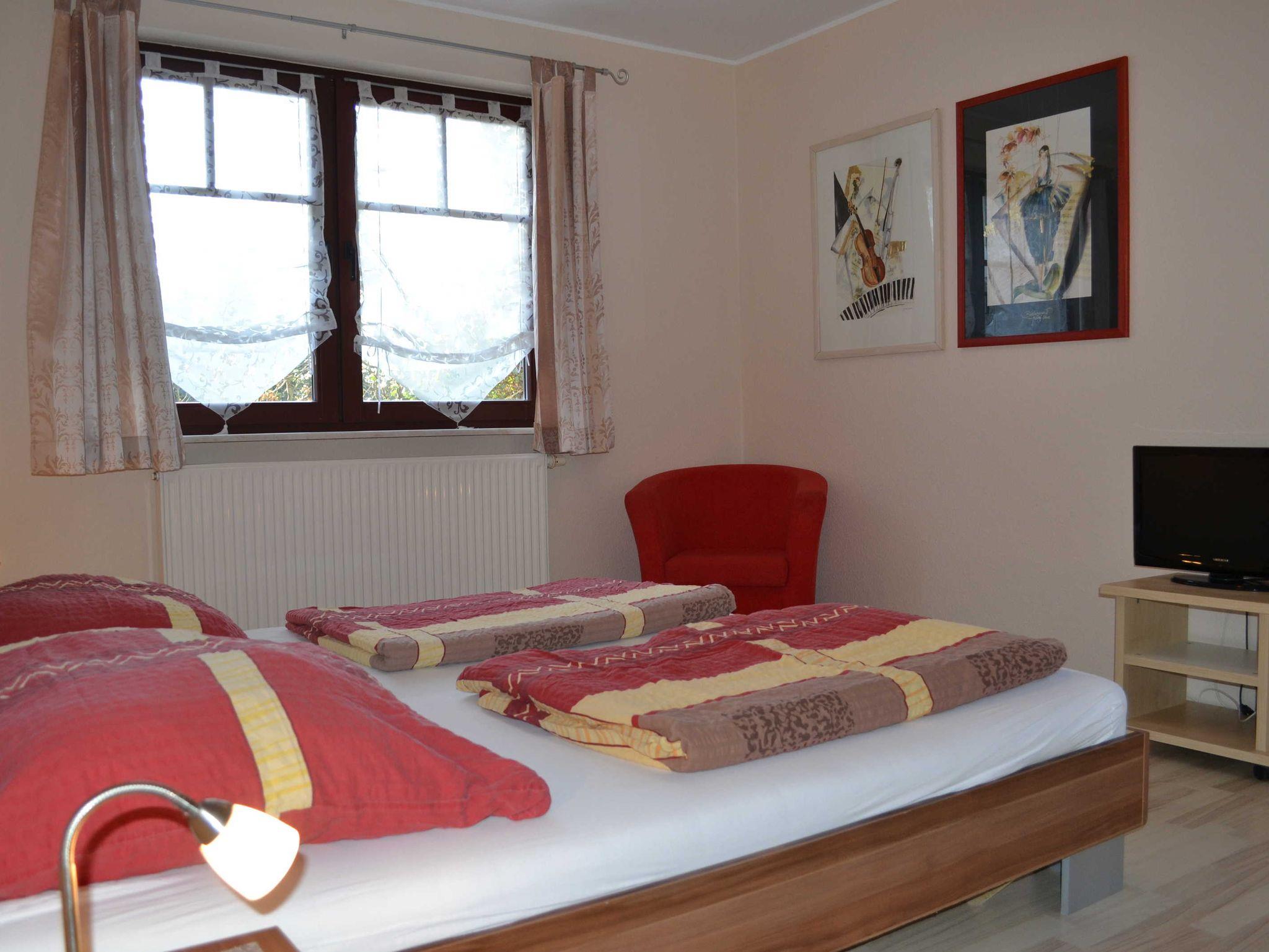 Große Wohnung im EG mit 2 Schlafzimmer mit Babyreisebett, Terrasse und Gartenbenutzung, Wohnzimmer mit WLAN und einer Küche mit Gefriereinheit