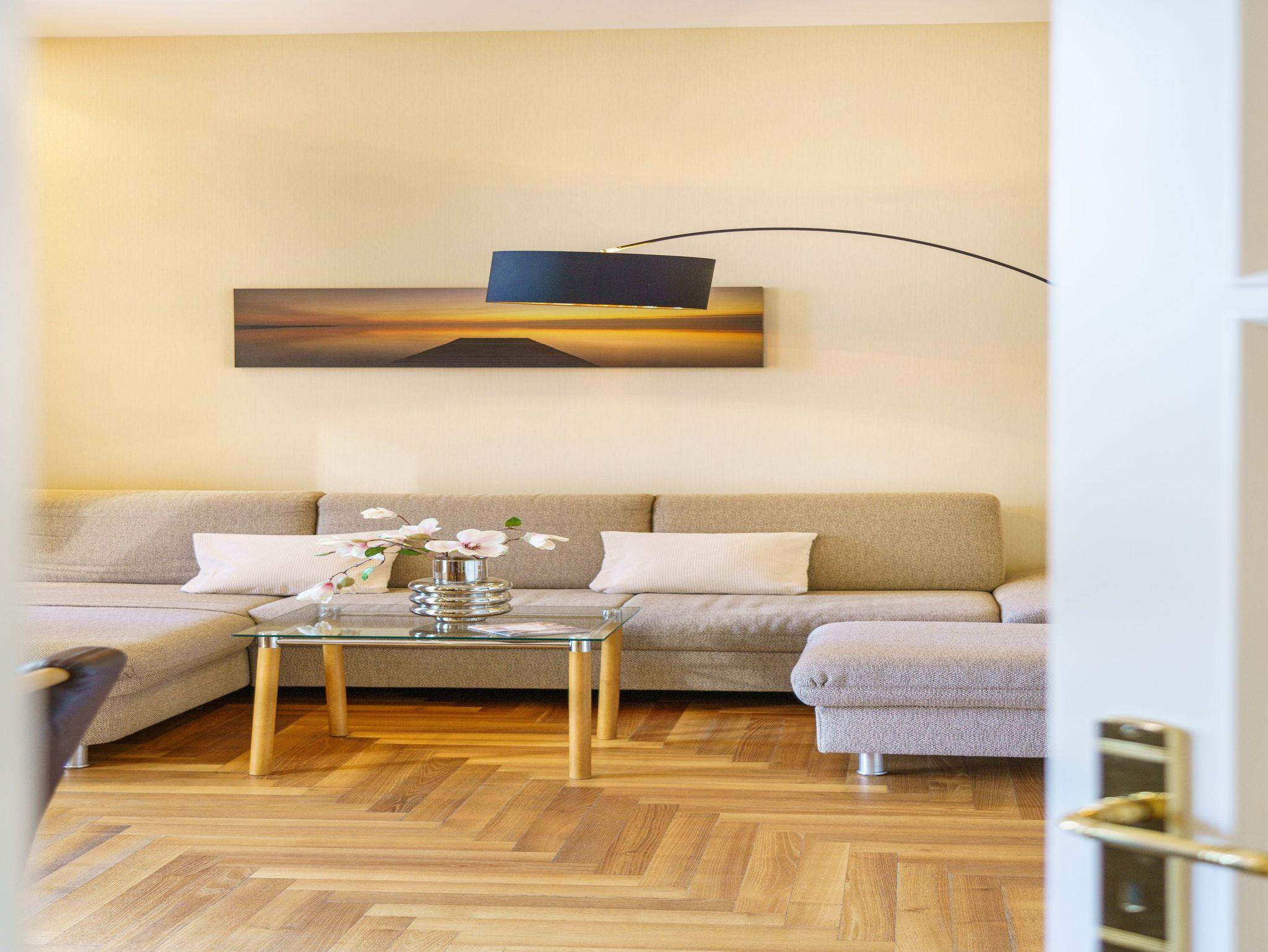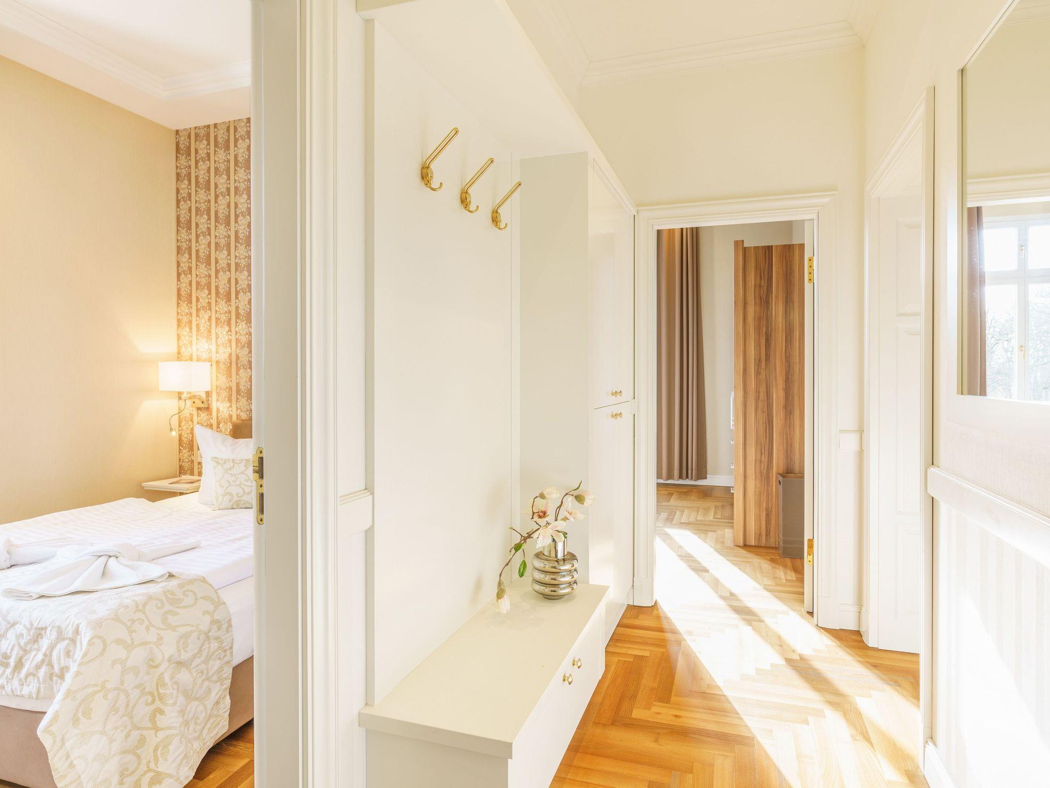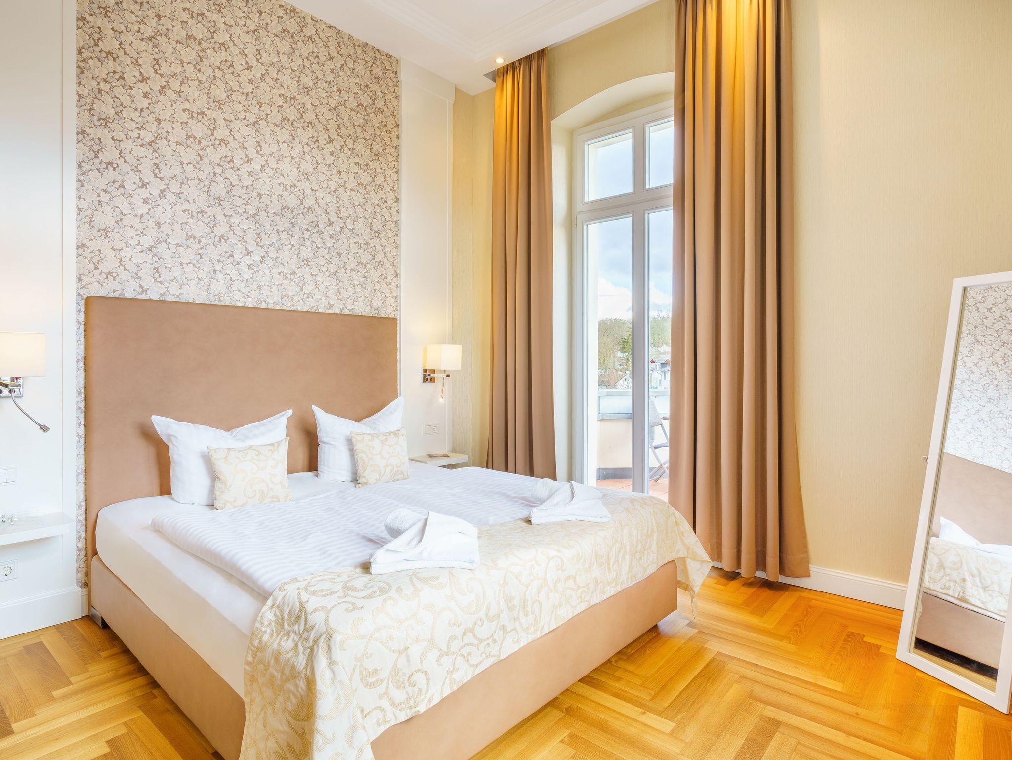 Das großzügig geschnittene 3-Zimmer-Appartement liegt im 1. Obergeschoss der Villa Gruner und bietet mit seinen 70 Quadratmetern viel Platz für einen erholsamen Urlaub mit bis zu vier Personen.