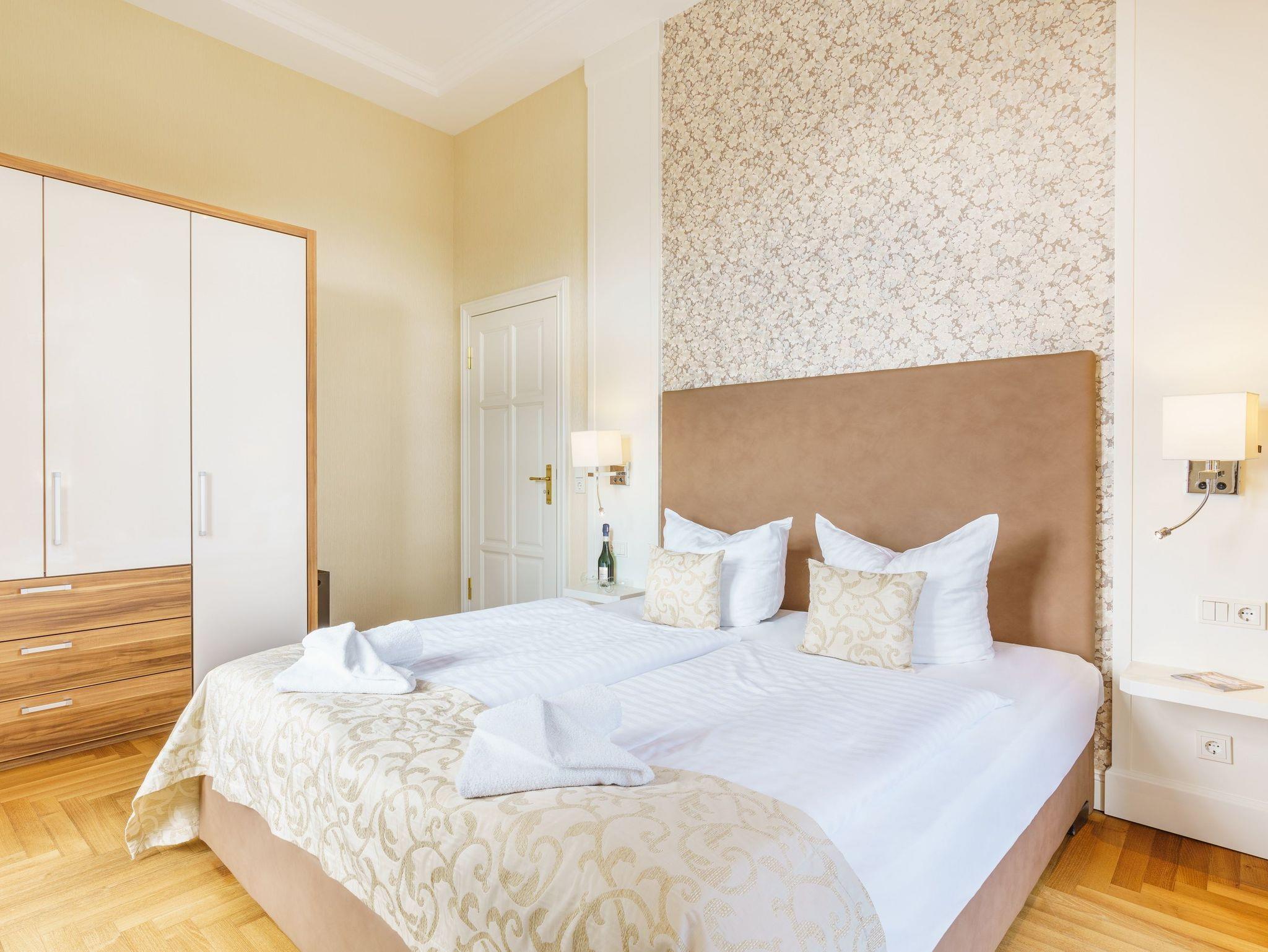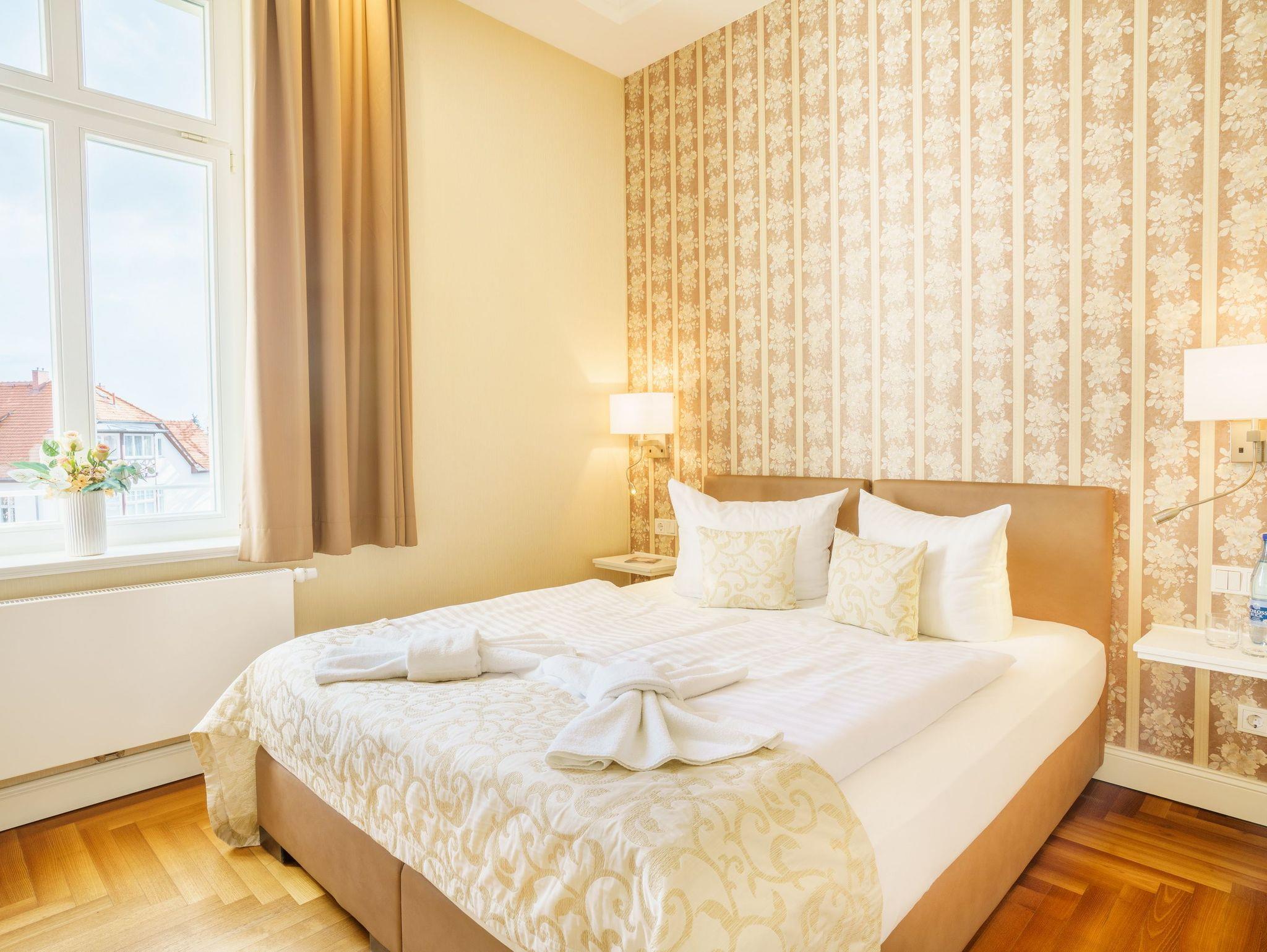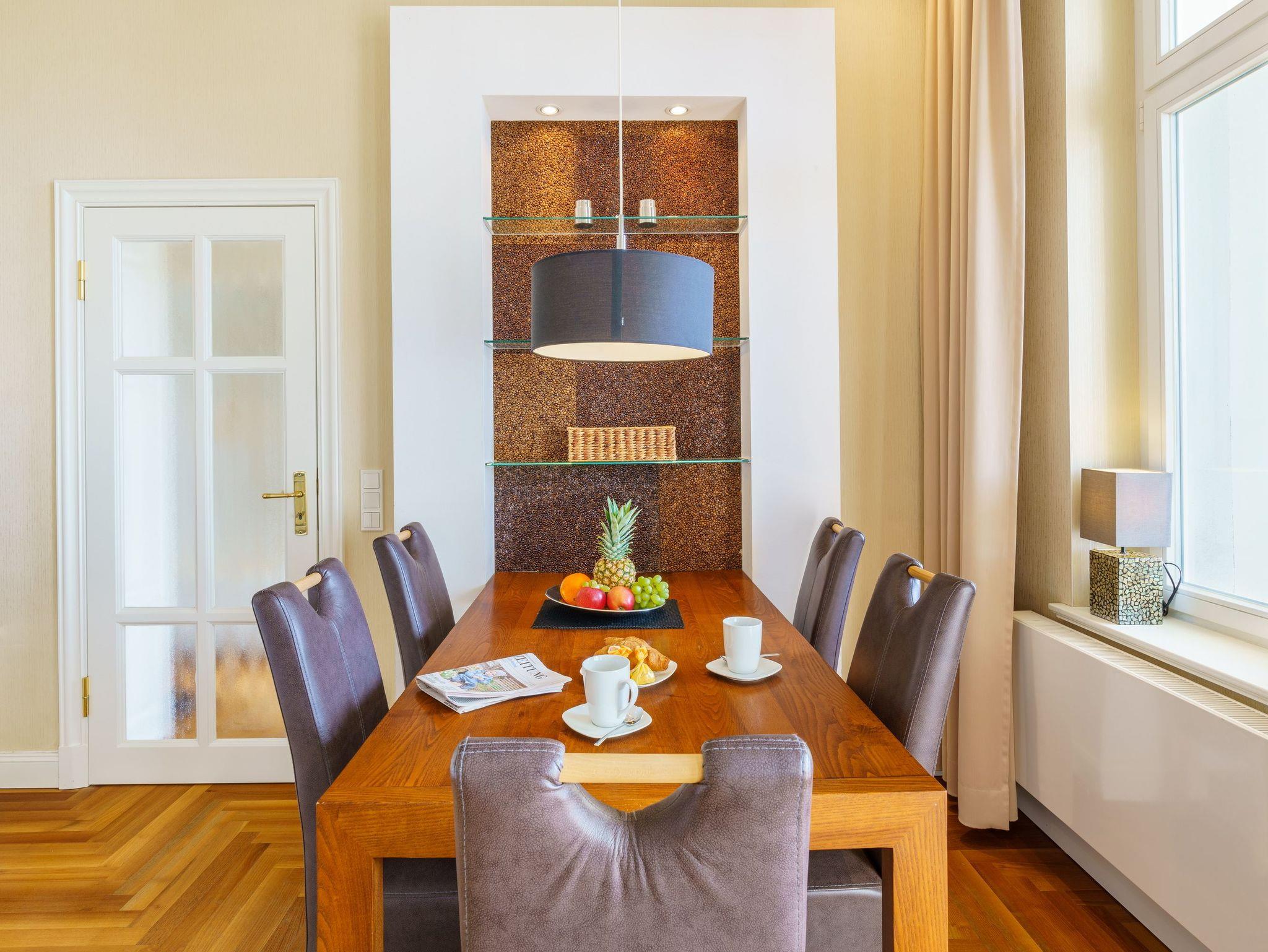 Das großzügig geschnittene 3-Zimmer-Appartement liegt im 1. Obergeschoss der Villa Gruner und bietet mit seinen 70 Quadratmetern viel Platz für einen erholsamen Urlaub mit bis zu vier Personen.