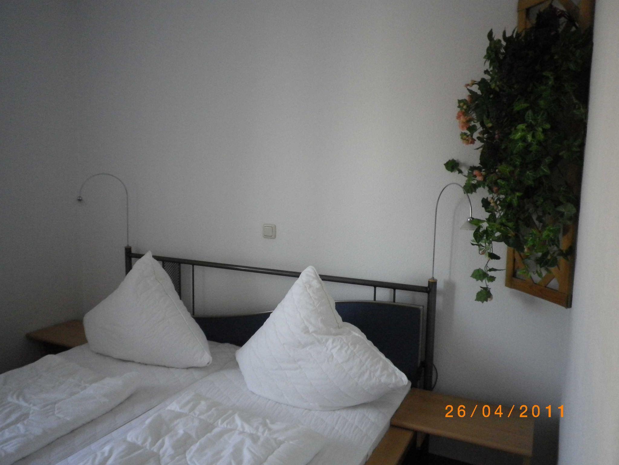 Wohnung 28: Obergeschoßwohnung mit Wintergarten in zentraler Lage, Schlafzimmer und großes, aufbettbares Wohnzimmer als Wohnbereich mit Küche und Essplatz, Badausstattung mit Badewanne mit WC und Waschtisch, Parkplatz vor der Haustür. Haustier zu 12Euro/Nacht erlaubt. Aufbettung ab der 3. Person 5Euro/Nacht.