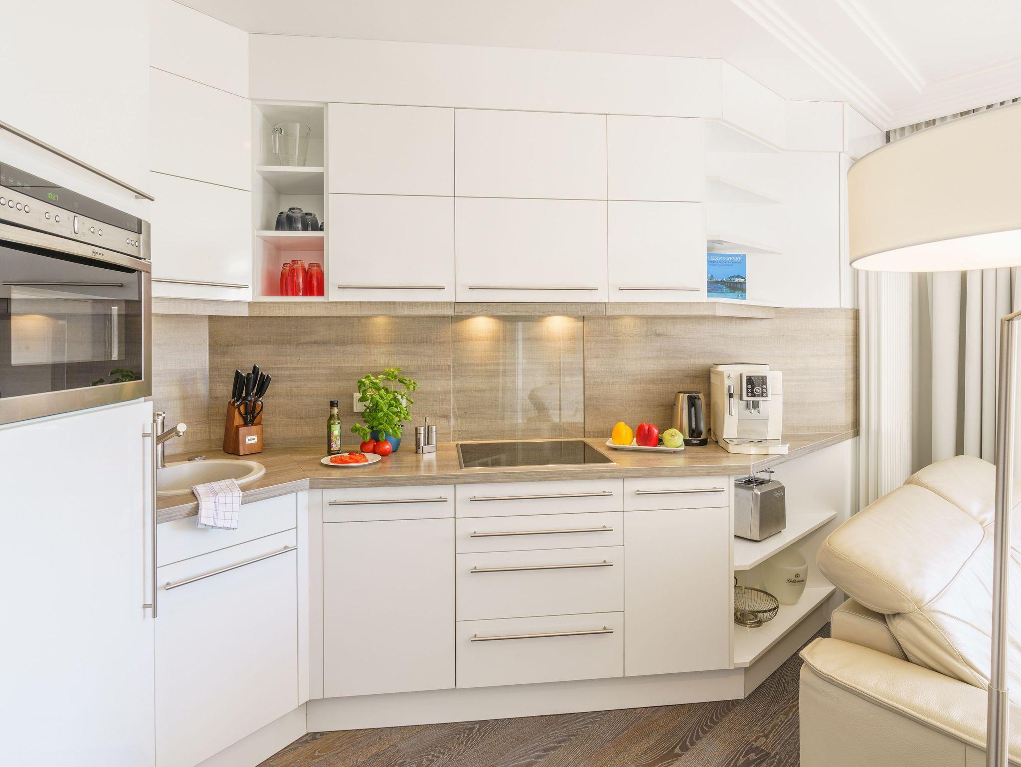 Der moderne Wohnbereich lädt mit einer Relaxcouch zum Verweilen vor dem Gaskamin oder dem Flat-TV ein. Die im Wohnraum integrierte Designerküche mit Kaffeevollautomat bietet jeglichen Komfort (Backofen, Kühlschrank mit Gefrierfach, Geschirrspüler, Wasserkocher, Toaster), den sich ein Kochliebhaber wünschen kann. Das Schlafzimmer ist mit einem komfortablen XXL-Boxspringbett (200 x 200cm / zwei getrennte Matratzen) ausgestattet.