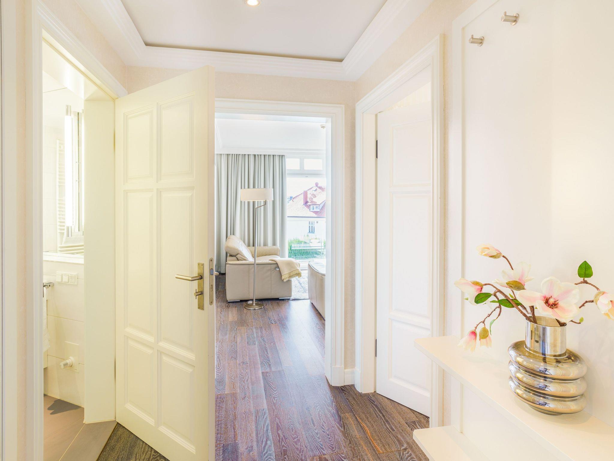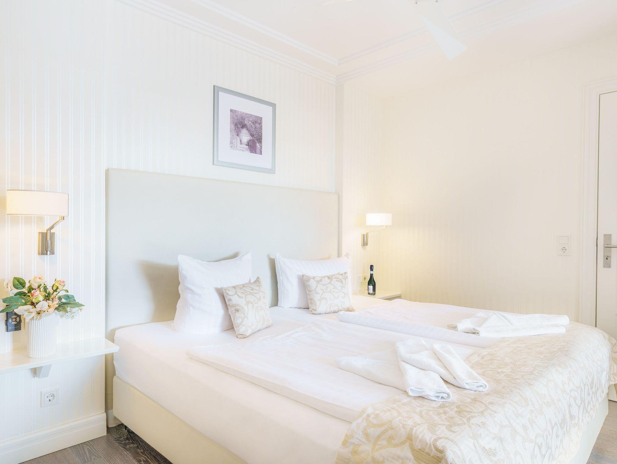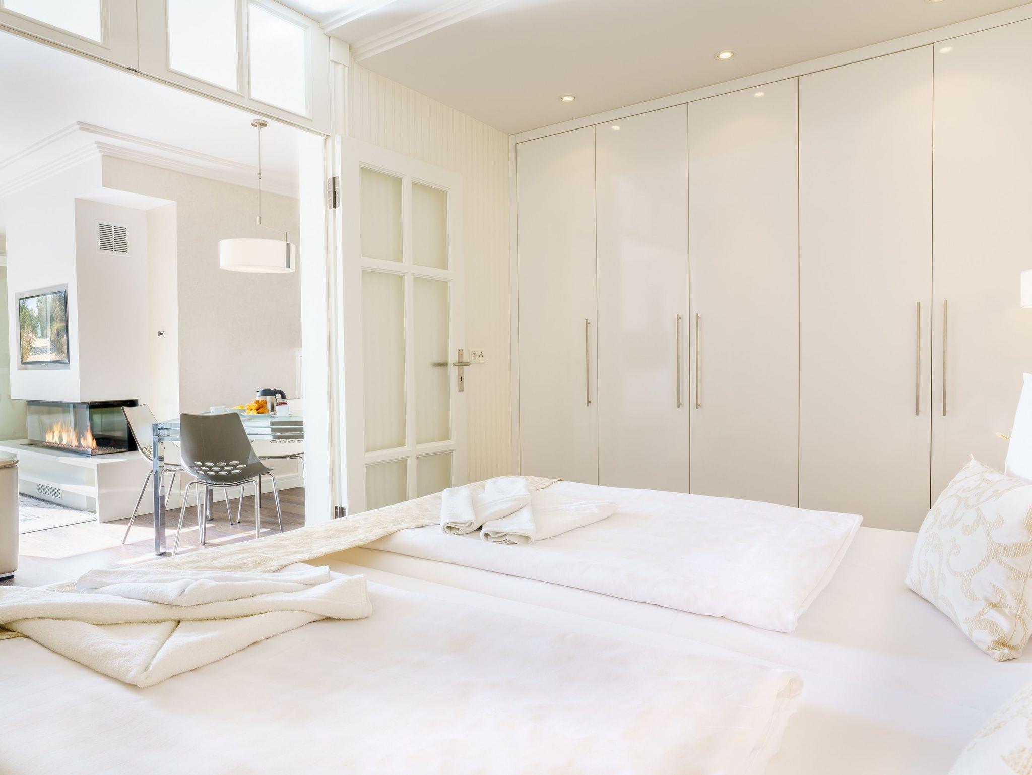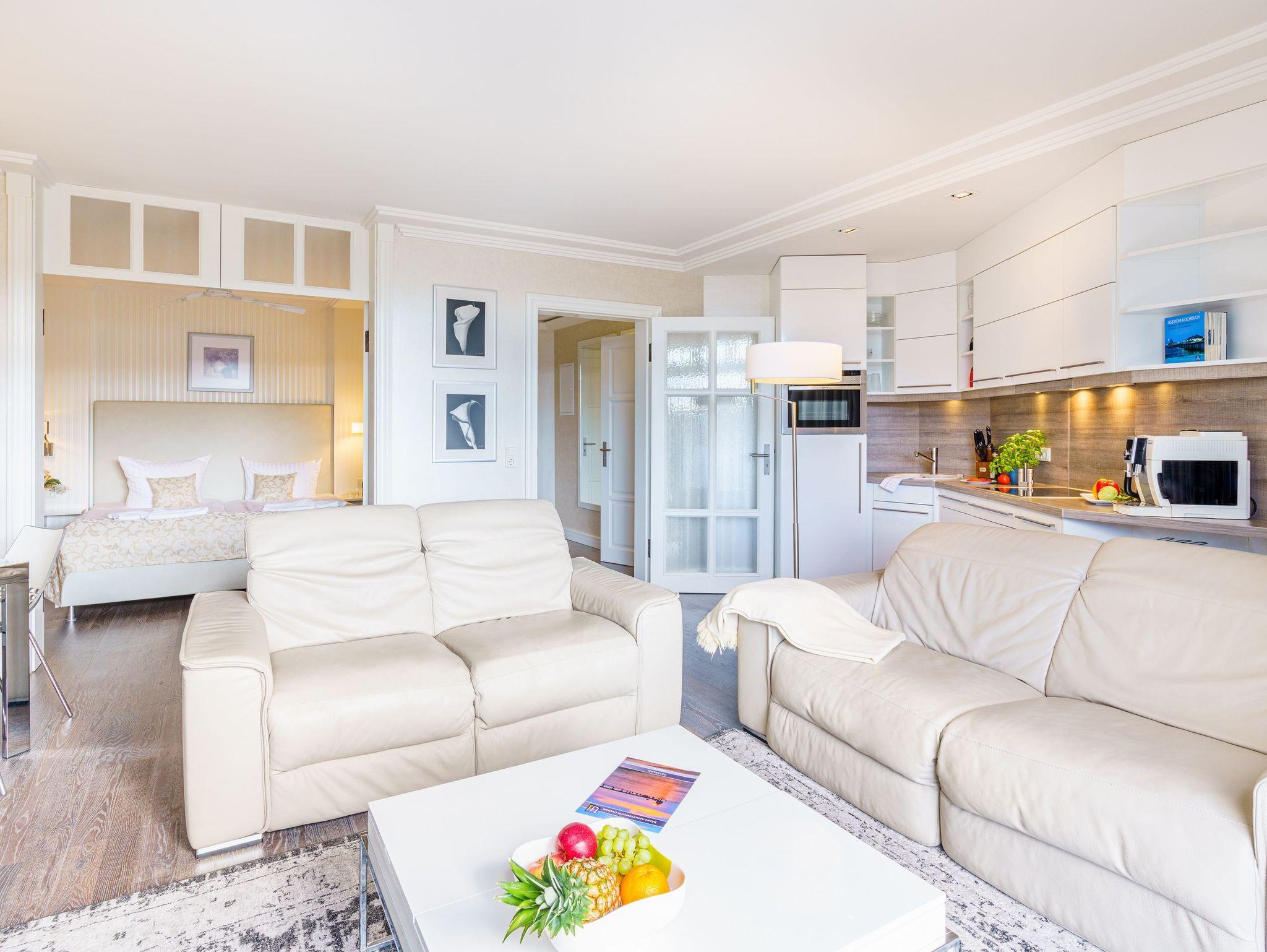 Das luxuriöse 2-Raum-Appartement mit einer Größe von 53 Quadratmetern im 1.Obergeschoss der Villa Gruner ist das perfekte Urlaubsdomizil für Paare oder Freunde. Dank der großen Fenster-Schiebetüren (mit zusätzlich integriertem Insektenschutz) wirkt das Wohnzimmer beim Öffnen dieser wie ein großzügig überdachter Balkon.