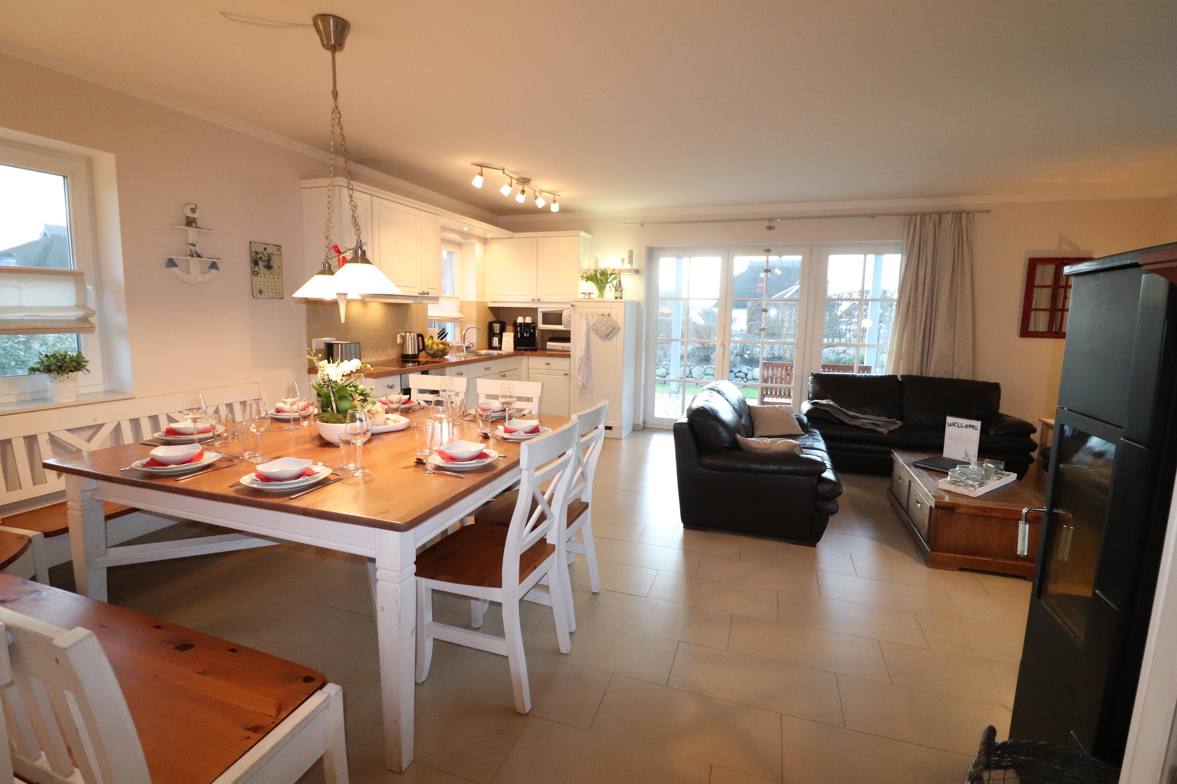 Stilvolles Reethaus mit Sauna, Offener Wohnküche (Induktionskochfeld, Spülmaschine, Mikrowelle, Heißluftherd, Kaffeemaschine, Wasserkocher, Toaster, großer Kühlschrank, Gefrierfach).