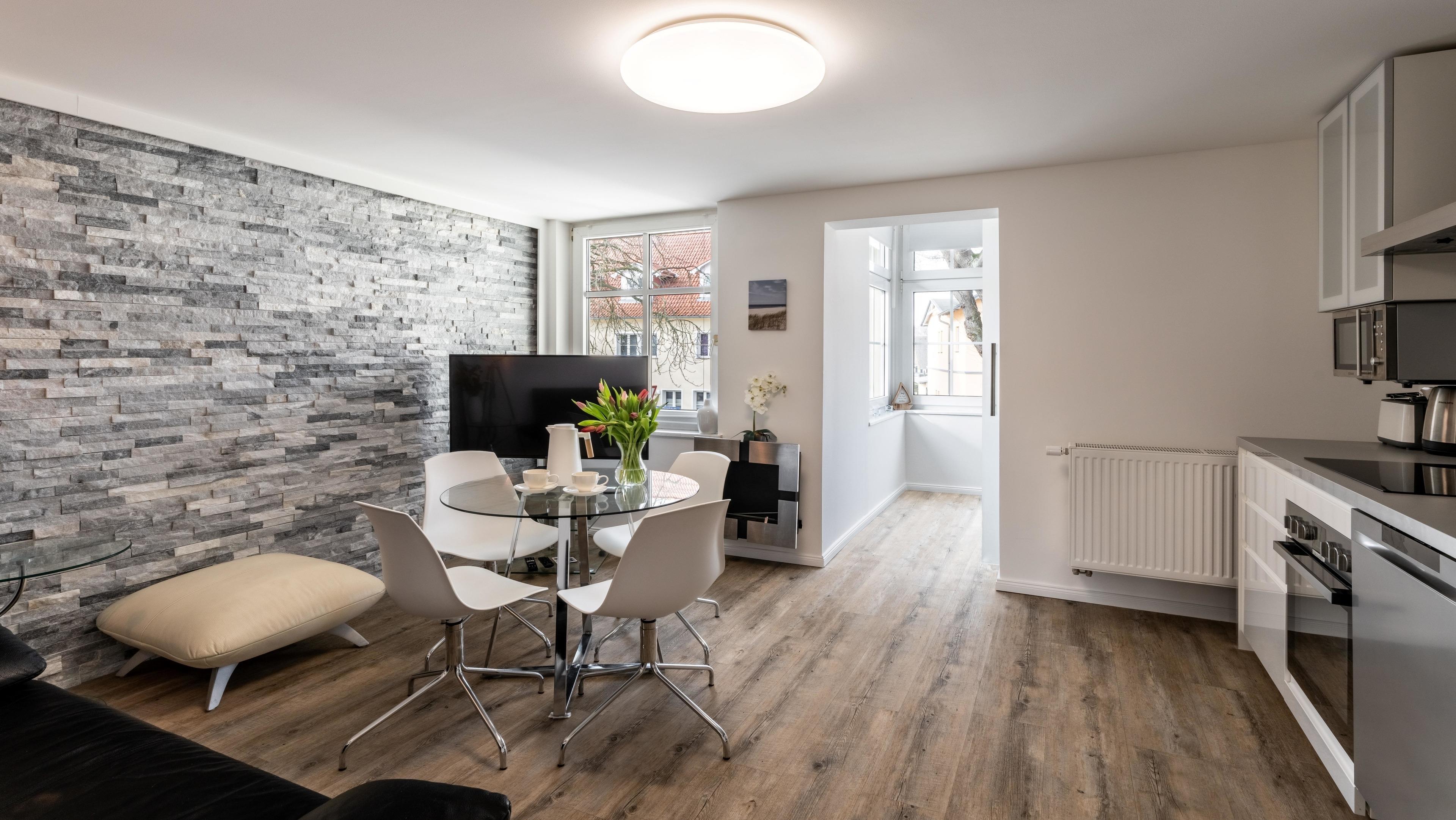 Sie suchen eine moderne und doch gemütliche Ferienwohnung für ihre Urlaubszeit? Kommen Sie zu uns in den Nachtstern auf 42 qm im Obergeschoss der liebevoll sanierten Villa Helga.
