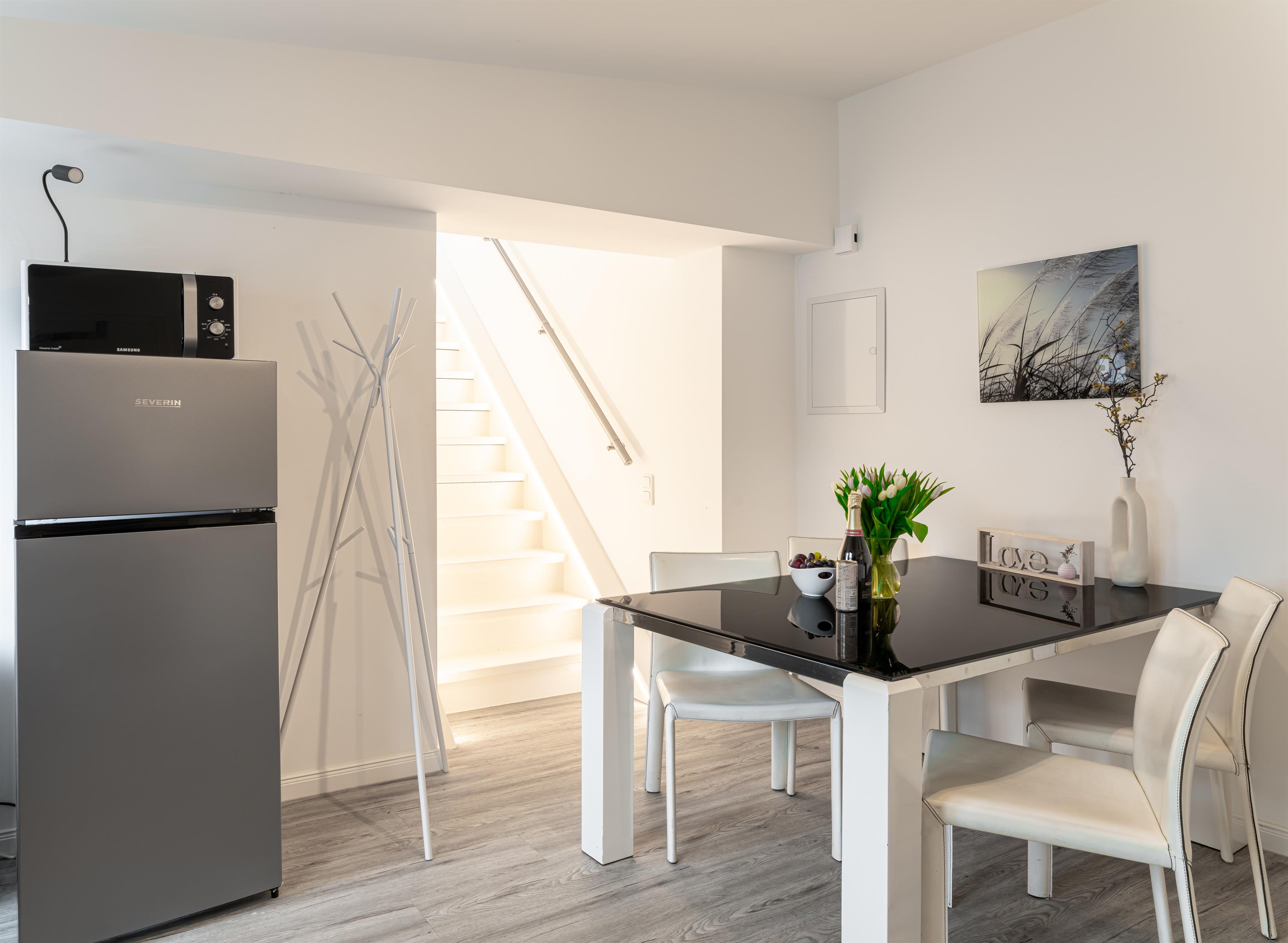 Wir bieten Ihnen jeglichen Komfort für einen sorgenfreien Aufenthalt – kostenfreies WLAN, Smart-TV mit Streaming Funktion, Geschirrspüler, Kühlschrank mit Gefrierfach, Backofen mit Induktions-Kochfeld, Mikrowelle, Wasserkocher, Kaffeemaschine, Kaffeepad Maschine, Toaster, Föhn, Babybett, Babyhochstuhl und vieles mehr.