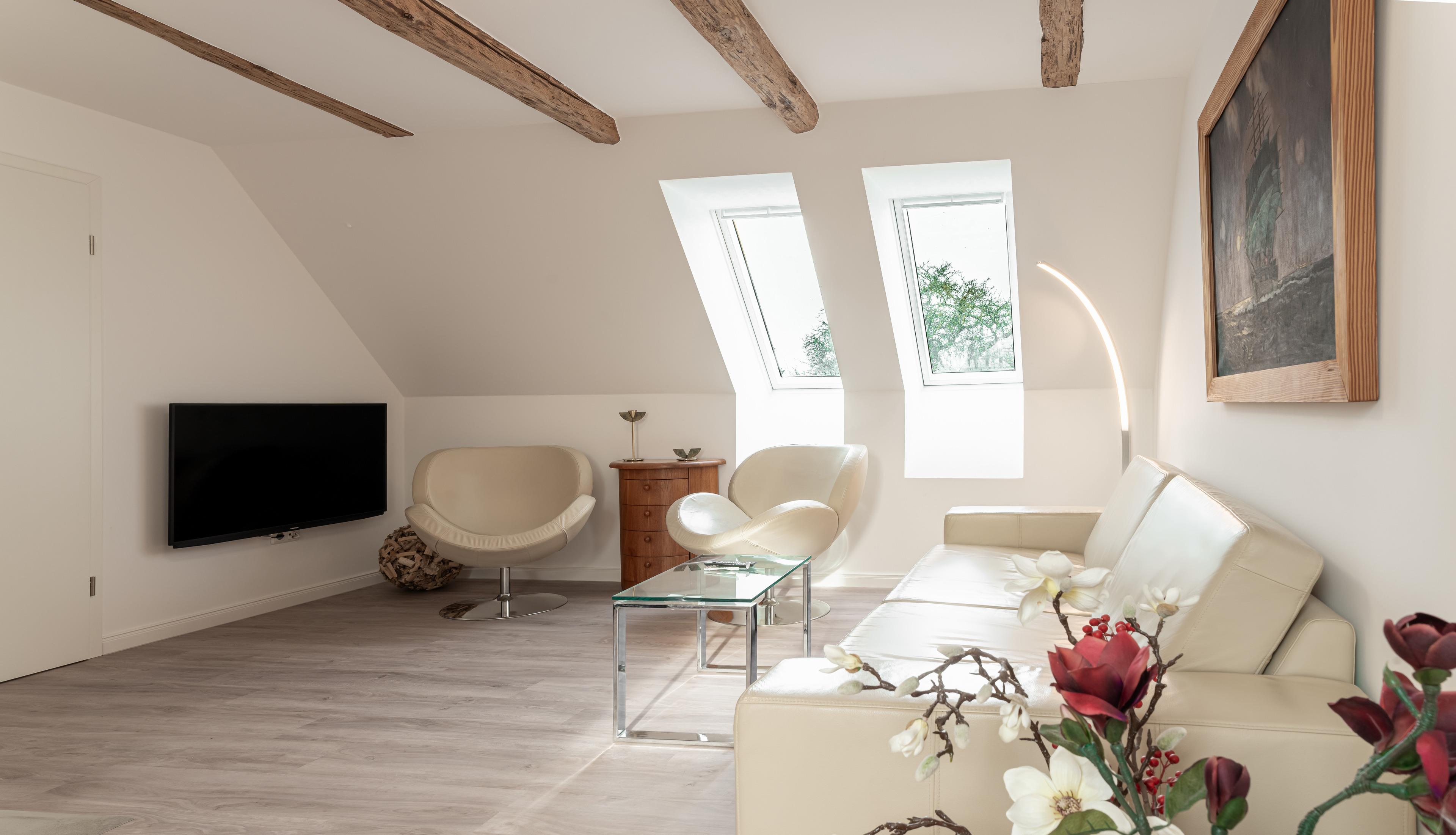Lassen Sie sich himmlisch verwöhnen in unserer 2023 kernsanierten Maisonette-Wohnung Himmel. Die Wohnung bietet auf 65 qm zwei Schlafzimmer mit insgesamt vier Schlafplätzen (ein Doppelbett (160x200) und ein weiteres Bett (140x200)). Das gemütliche Wohnzimmer lädt mit einem Kaminofen zu romantischen Stunden ein, während die moderne Fußbodenheizung für angenehme Wärme sorgt.