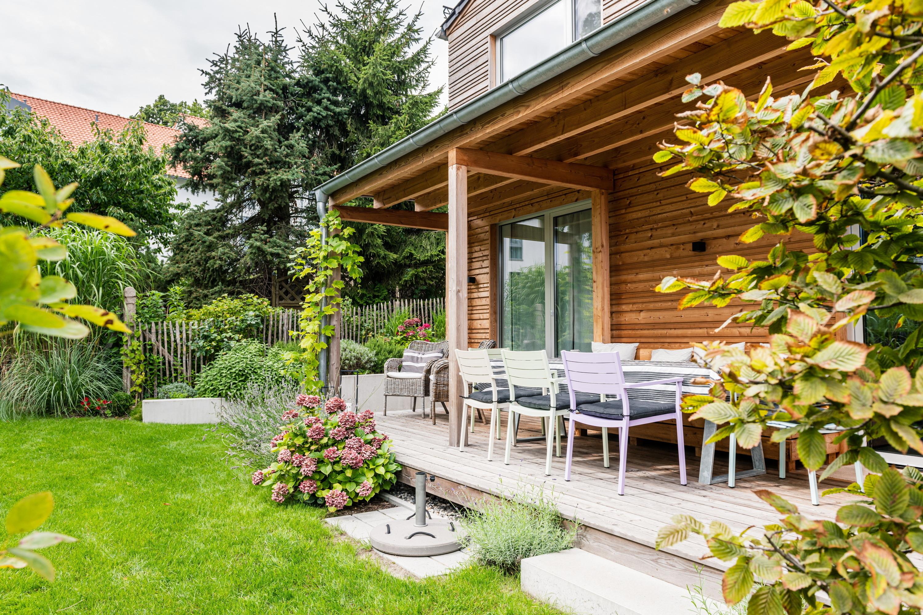 Ihr Ferienhaus STRANDGRAU befindet sich auf dem vorderen Teil des Grundstücks.