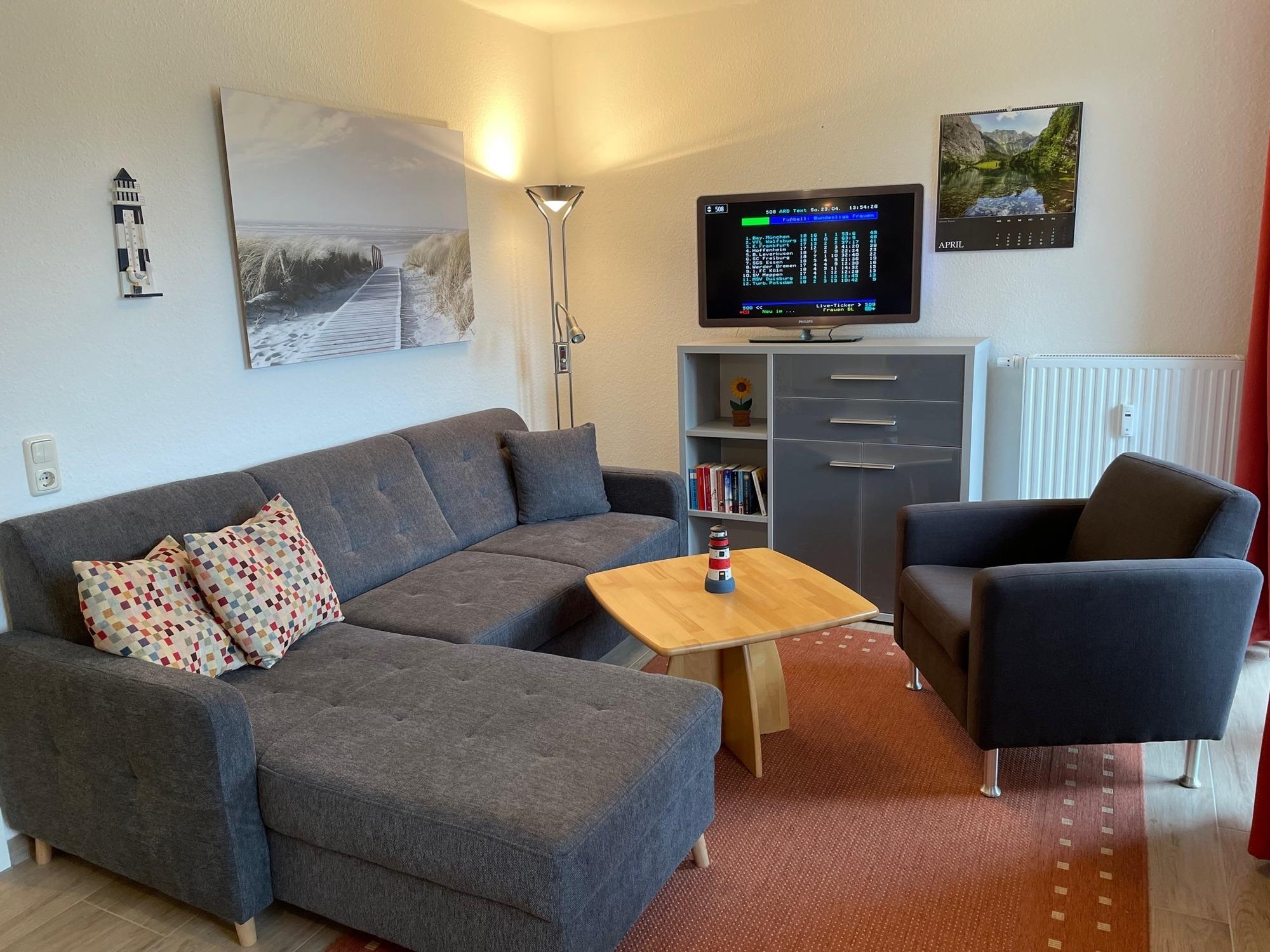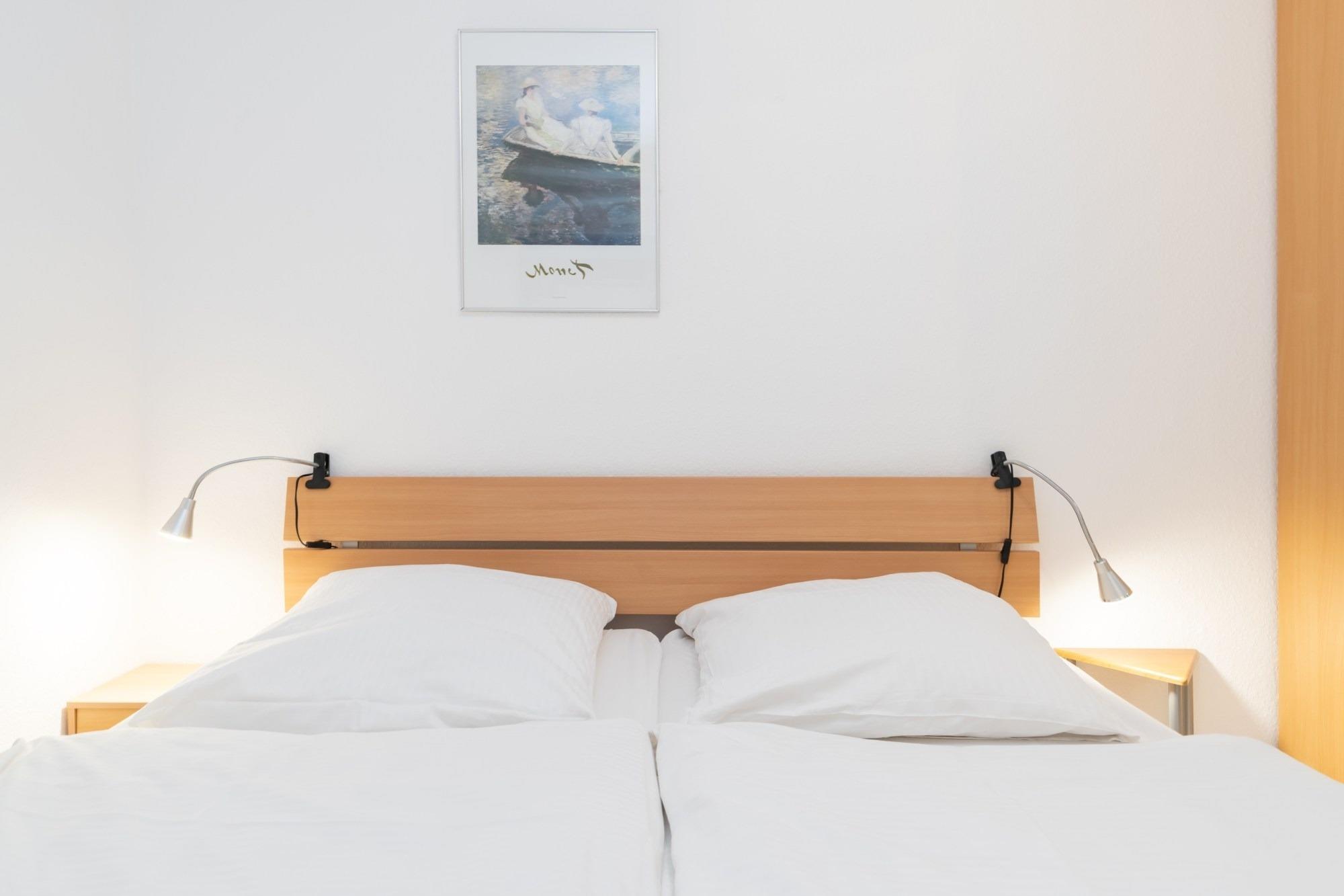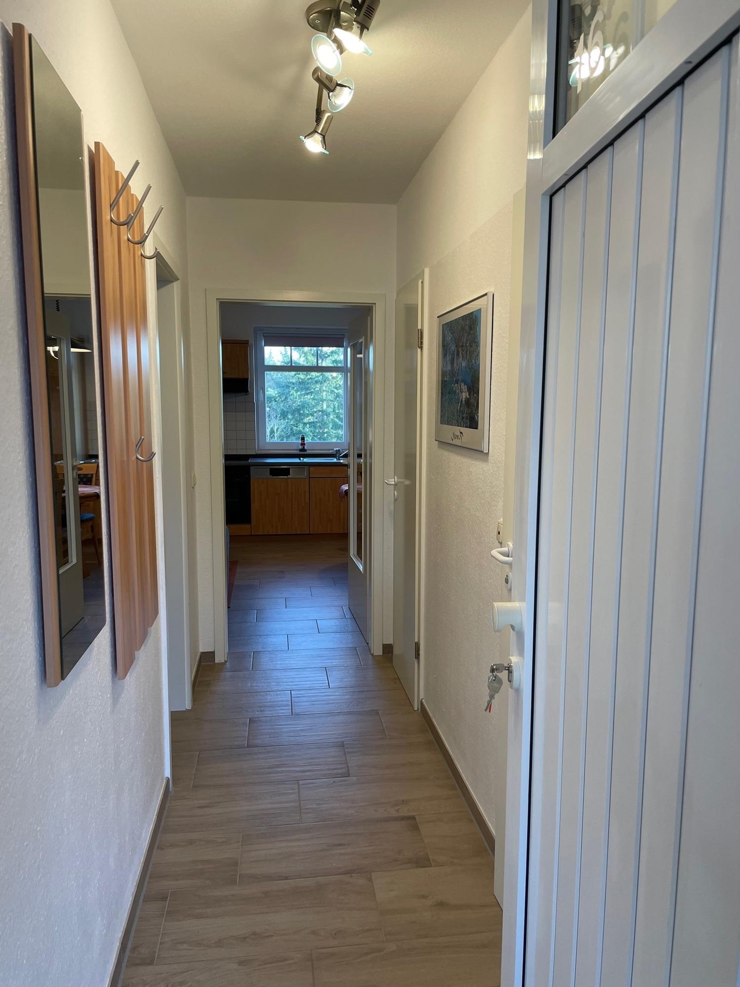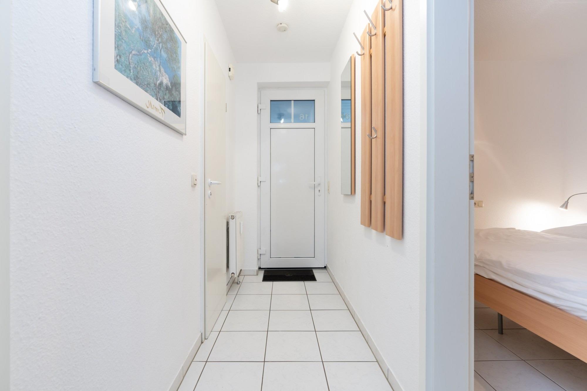 Die 36 m ² große Ferienwohnung 16 befindet sich in der 3. Etage im Haus Roland (rechtes Gebäude vom Parkplatz aus gesehen). Sie bietet mit ihren zwei Zimmern ausreichend Platz für bis zu 3 Personen.