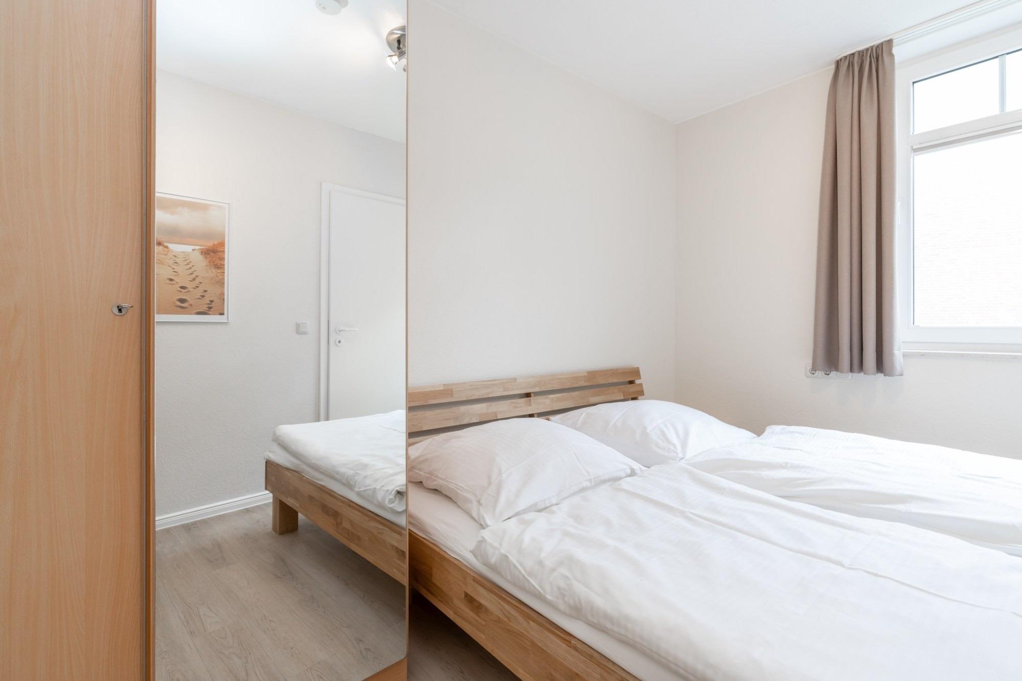 Die 61 m ² große Ferienwohnung 19 befindet sich im Erdgeschoss im Haus Roland (linkes Gebäude vom Parkplatz aus gesehen). Sie bietet mit ihren drei Zimmern ausreichend Platz für bis zu 6 Personen.