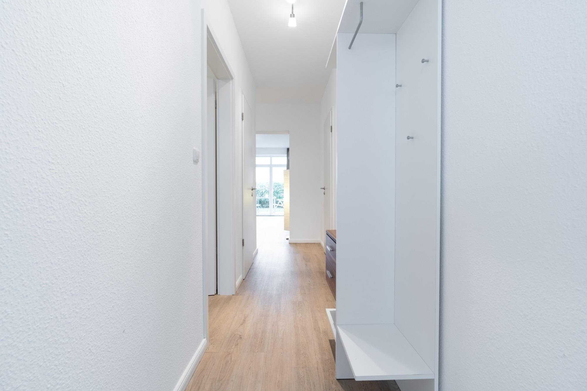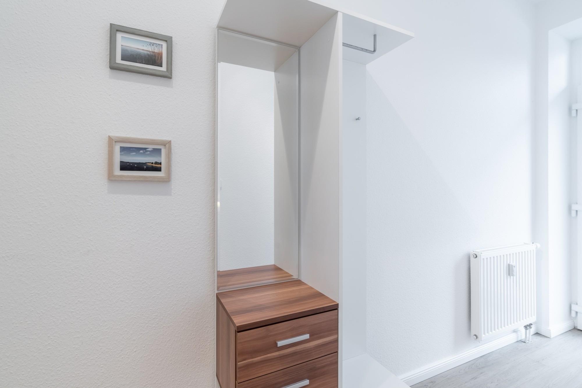 Die Ferienwohnung verfügt über einen Wohnbereich mit offener Küche, ein Schlafzimmer, ein Bad mit Dusche und eine Terrasse (Südseite).