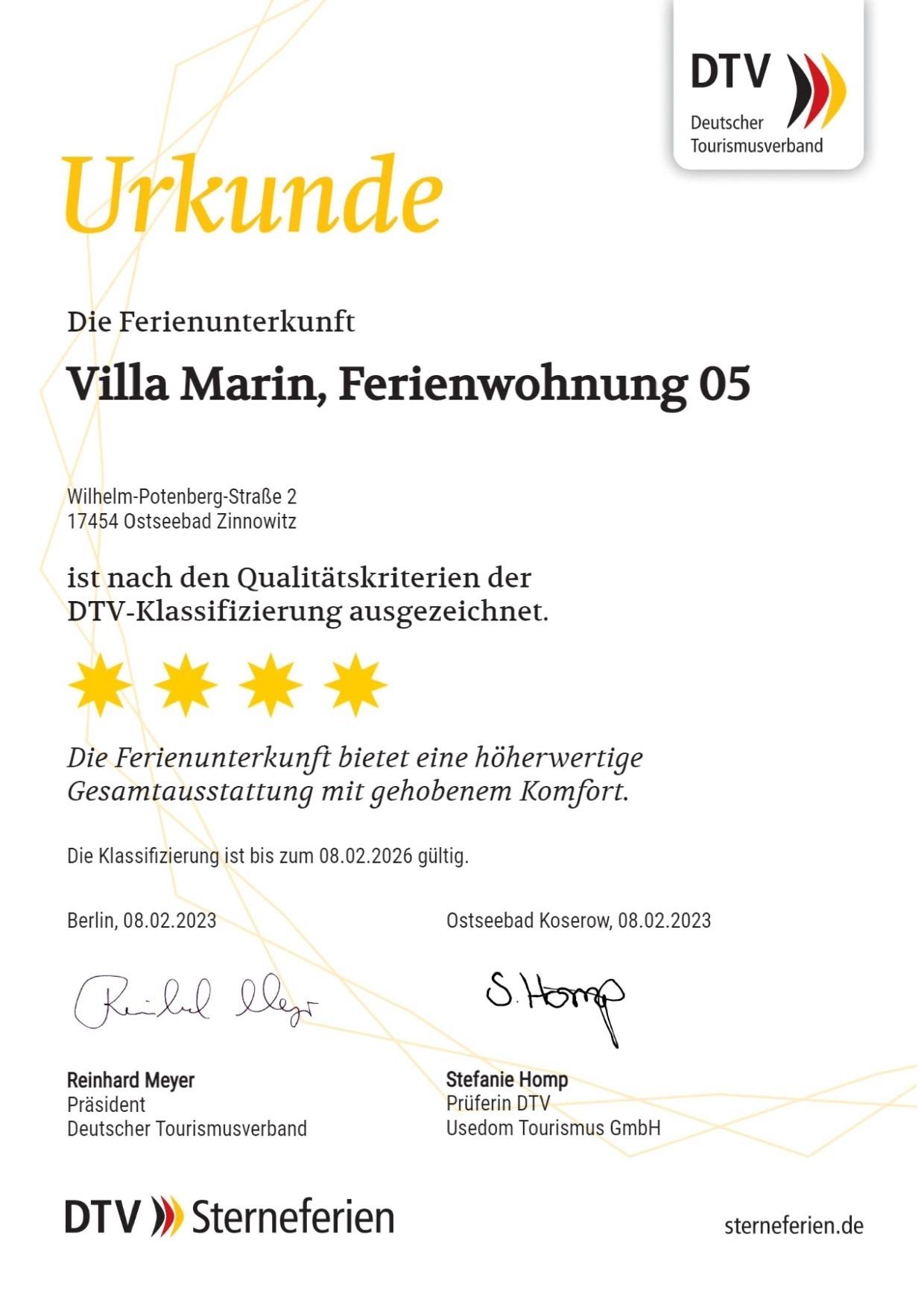 Die 48 m ² große und mit 4 DTV Sternen klassifizierte Ferienwohnung 05 befindet sich im Erdgeschoss in der Villa Marin. Sie bietet mit ihren zwei Zimmern ausreichend Platz für bis zu 4 Personen (+ Baby möglich).