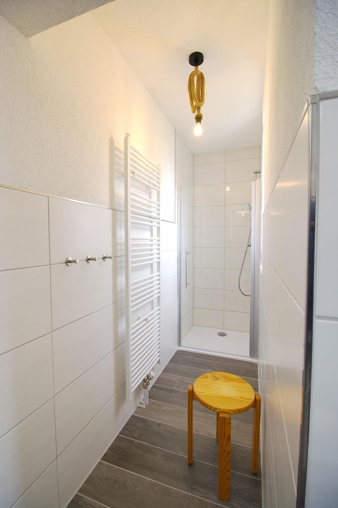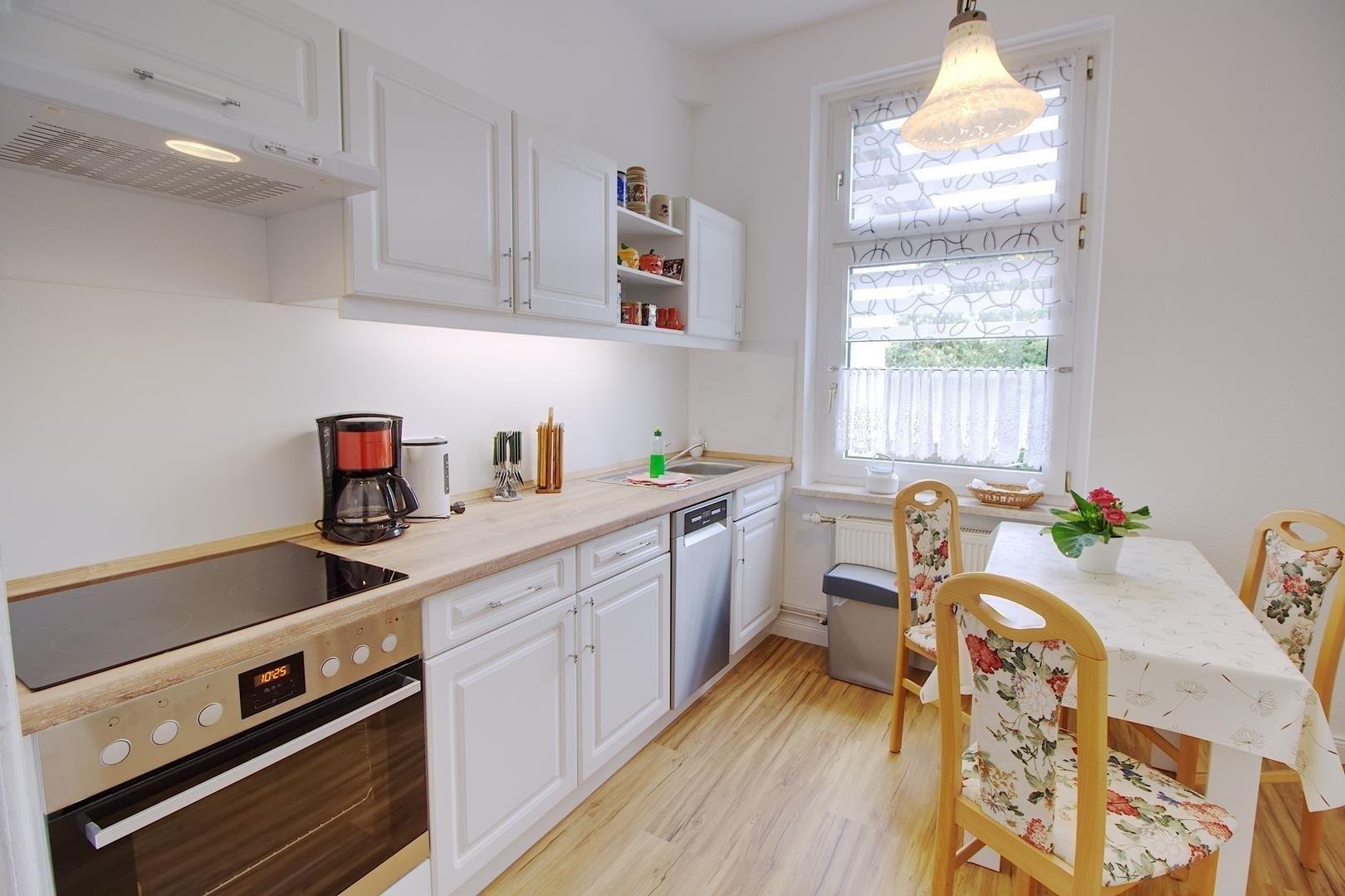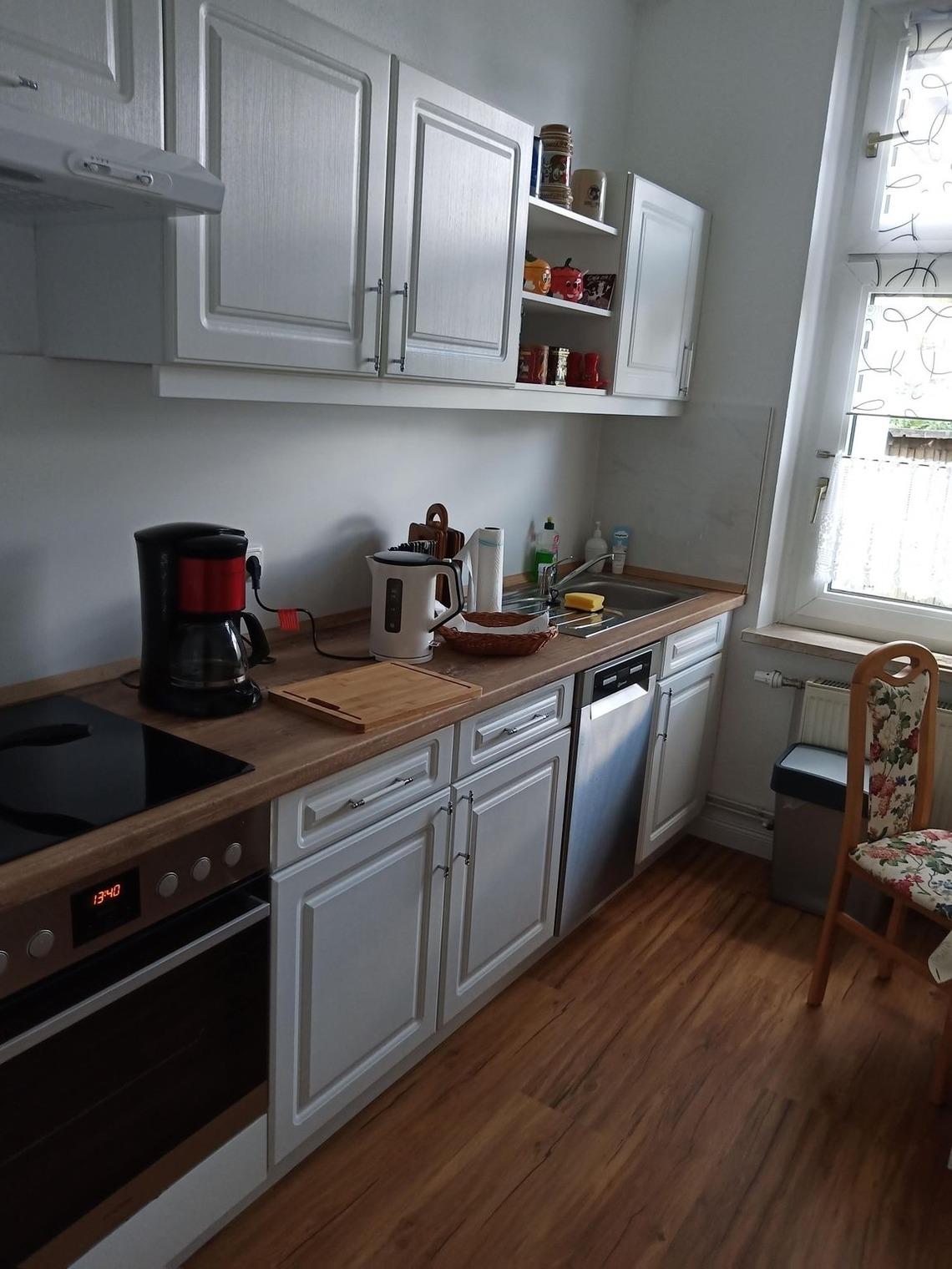 Die Wohnung verfügt auch über ein Badezimmer mit WC, Dusche, Fußbodenheizung und zwei Fenstern. Die moderne und helle Küche bietet ausreichend Platz zum gemeinsamen Kochen, Essen und Beisammensein. Auf dem Hof gibt es eine kleine Terrasse, wo man sich entspannen und die Nähe zum Meer und Wald genießen kann. Fahrräder können ebenfalls auf dem Hof abgestellt werden. Der Vermieter bittet darum, in der Wohnung nicht zu rauchen.