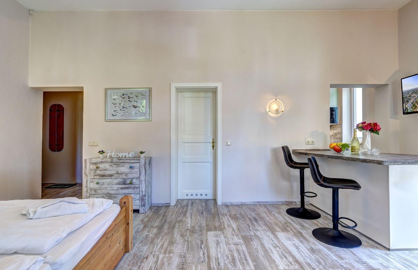 Das gemütliche Appartement „Küstenwald“ bietet ein Doppelbett, eine ausklappbare Doppelcouch, einen Full-HD-TV mit Sat-Empfang und ein Radio mit CD-Player. Es verfügt über ein Bad mit Dusche sowie einen Südbalkon zur Waldseite des Palais. Die gut ausgestattete Küchenzeile bietet Kaffeemaschine, Wasserkocher, Toaster, Kleinkühlschrank und Kochmöglichkeit.