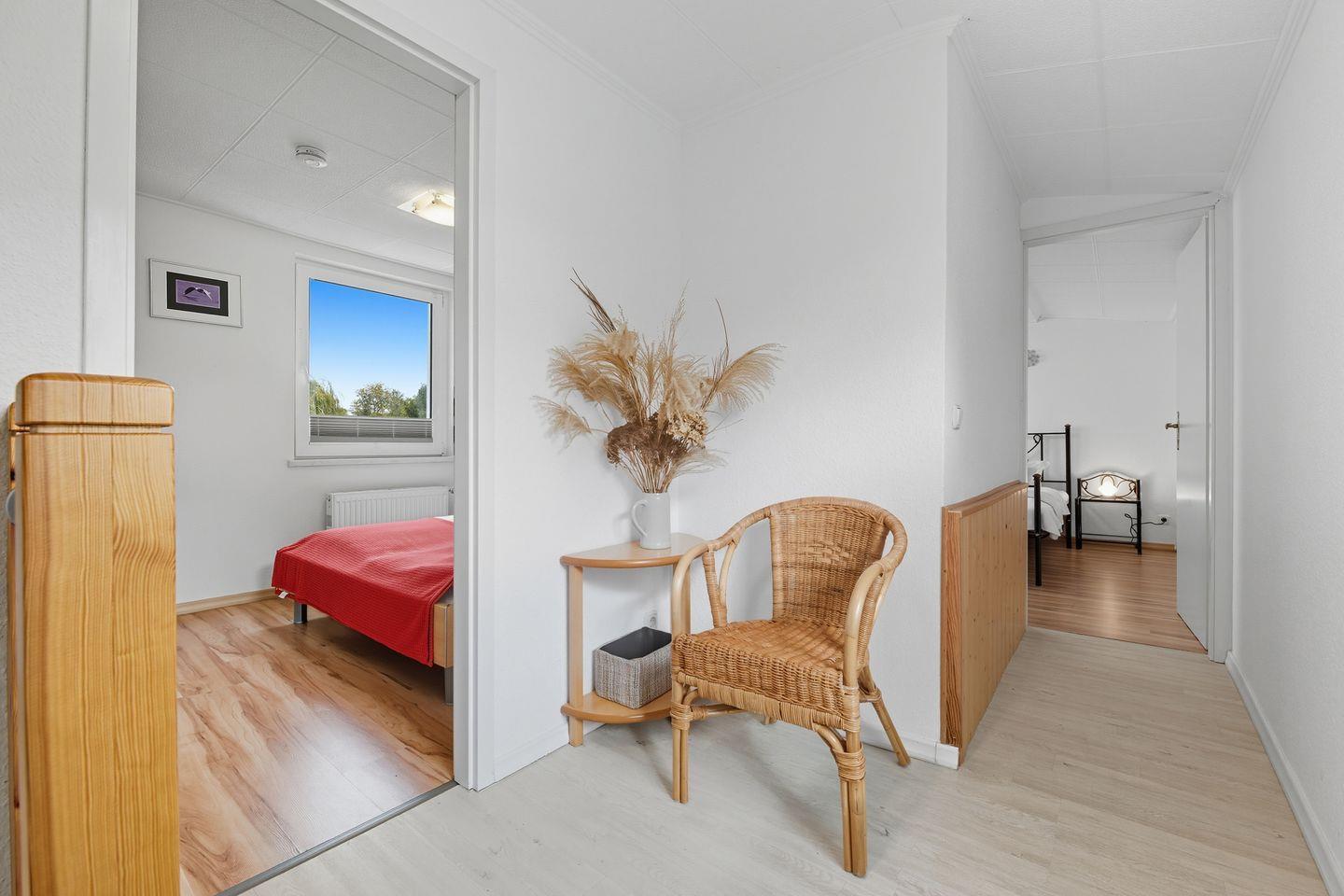 Die beiden gemütlichen Schlafzimmer im Obergeschoss sorgen für erholsamen Schlaf: Eines ist mit einem 180 cm breiten Doppelbett ausgestattet, das andere mit einem 160 cm breiten Doppelbett.