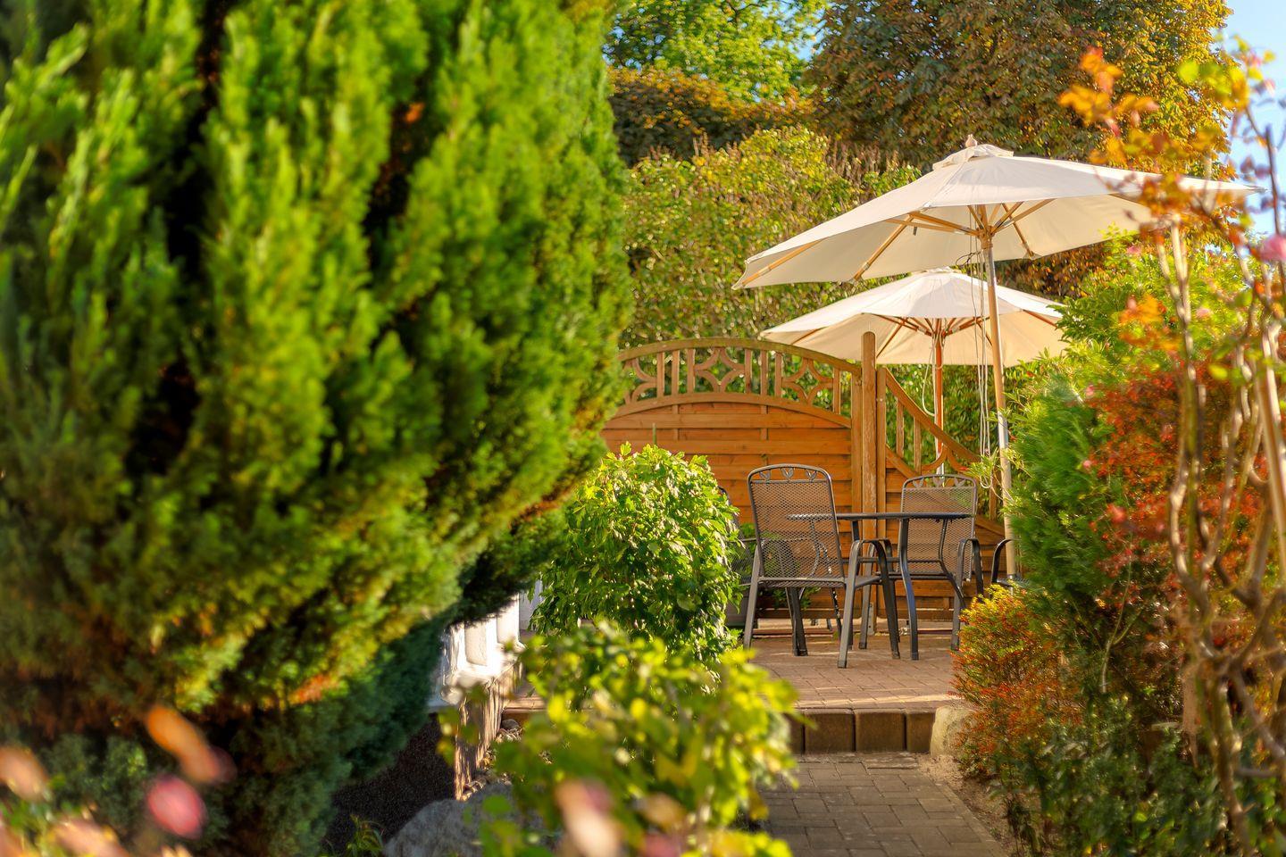 Das Angebot wird abgerundet durch eine sonnige Terrasse in Süd-West-Richtung mit Blick in den gepflegten Blumengarten.