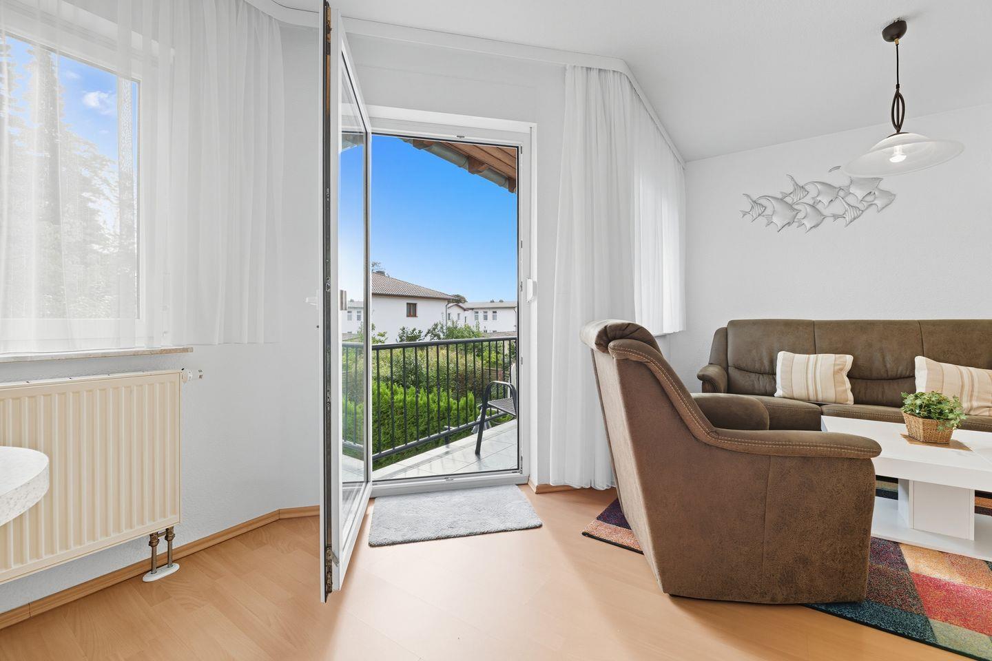 Komfortable Ferienwohnung mit Balkon und Terrasse in ruhiger Lage von Zinnowitz, ideal für erholsame Ostseeurlaube.