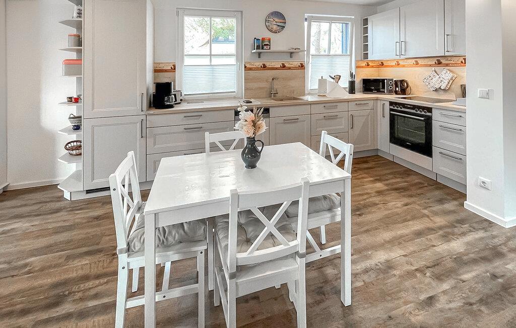 Das 100 m² große Ferienhaus für max. 4 Personen + Kleinkind befindet sich auf einem 640 m² großen Erholungsgrundstück innerhalb der Ferienhaus-Siedlung am Kieferwald am Ortsrand von Zirchow. Das Ferienhaus wurde Mitte 2022 fertiggestellt (Erstbezug Juni 2022). Es erstreckt sich über zwei Wohnebenen und ist hochwertig ausgestattet. Vorhanden sind im Erdgeschoss ein großer Wohn-/Essbereich (Polstermöbel, Flachbild-TV, Radio-CD, Esstisch, Kaminofen) mit einer offenen Küchenzeile (E-Herd mit Backofen, Kühlschrank mit Tiefkühlteil, Spülmaschine, Mikrowelle, div. Küchengeräte), ein Saunaraum mit Sauna und Dusche sowie ein Gäste-WC. Im Obergeschoss gibt es zwei Schlafräume (1 x Doppelbett und 2 Einzelbetten) und ein Bad mit Badewanne und Dusche. Für Kleinkinder stehen ein Kinderbett und ein Kinderhochstuhl bereit. Internet (W-LAN) ist ebenfalls vorhanden. Im Außenbereich gibt es eine möblierte Terrasse, Grill, Sonnenliegen, Unterstellmöglichkeit für mitgebrachte Fahrräder und ein Auto Parkplatz.