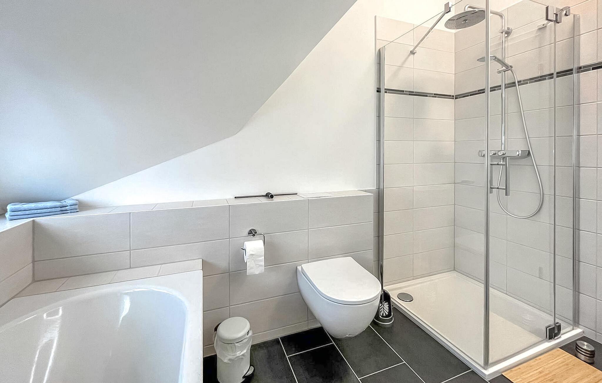 - WC mit warmem und kaltem Wasser, Dusche und Badewanne