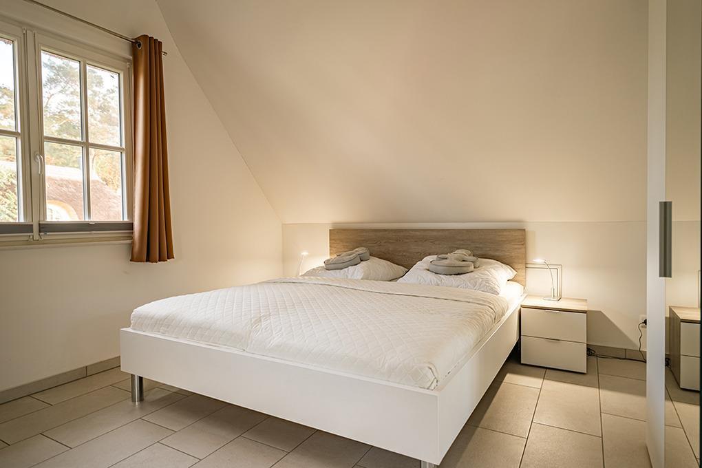 Haus: Großzügig angelegte Ferienhausanlage auf großem gepflegtem Areal (10 ha) mit lichtem Baumbestand. Hochwertiges, reetgedecktes Ferienhaus mit Sauna (Münzautomat, 2 EUR/Stunde) und Kaminofen. 3 separate Schlafzimmer, 2 Bäder. Gehobene Ausstattung mit geschmackvoller Möblierung. Zentralheizung. Kostenloser Internetzugang über W-Lan. Terrasse mit Sitzmöbeln, Strandkorb. Hauswirtschaftsraum mit Waschmaschine. 2 Pkw-Stellplätze.