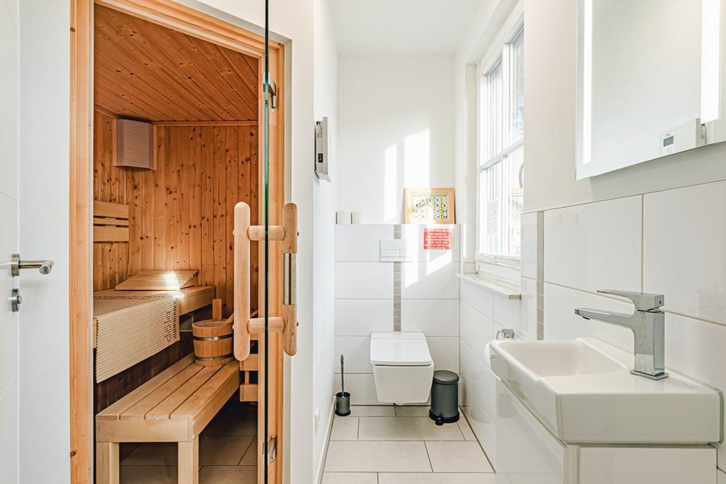 D 28.41 Ferienhaus 2-4 Pers.: Komfortables Ferienhaus mit 100 qm Wohnfläche über 2 Etagen (Nichtraucherhaus). Parterre: Heller, freundlicher Wohn-/Essraum mit Kaminofen, Couchgarnitur, Sat-TV, Esstisch, moderner Einbauküche (Backofen, Spülmaschine). Bad: Du, Wb, WC, Sauna. 1. Etage (leichte Dachschrägen): Doppelzimmer mit Sat-TV. 2 Einzelzimmer mit Sat-TV. Bad: Du, Bw, Wb, WC.
