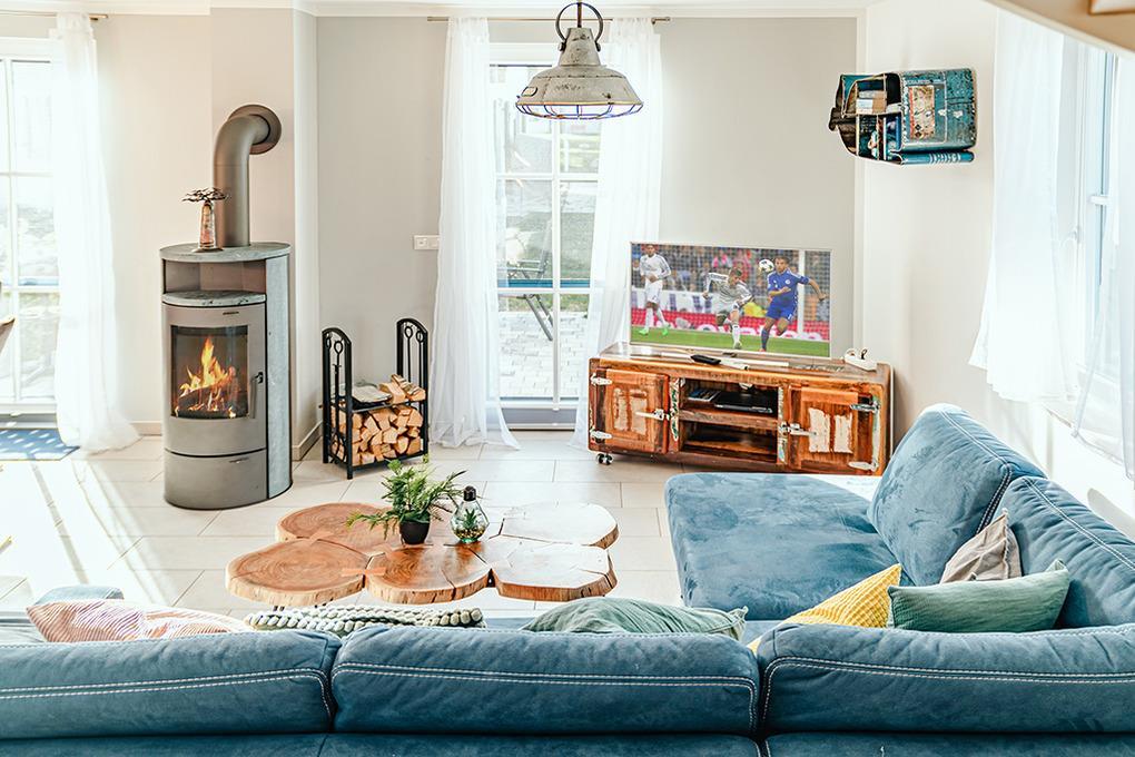 Modernes, reetgedecktes Ferienhaus mit Sauna und Kamin am Stettiner Haff, ideal für erholsame Tage in Zirchow.