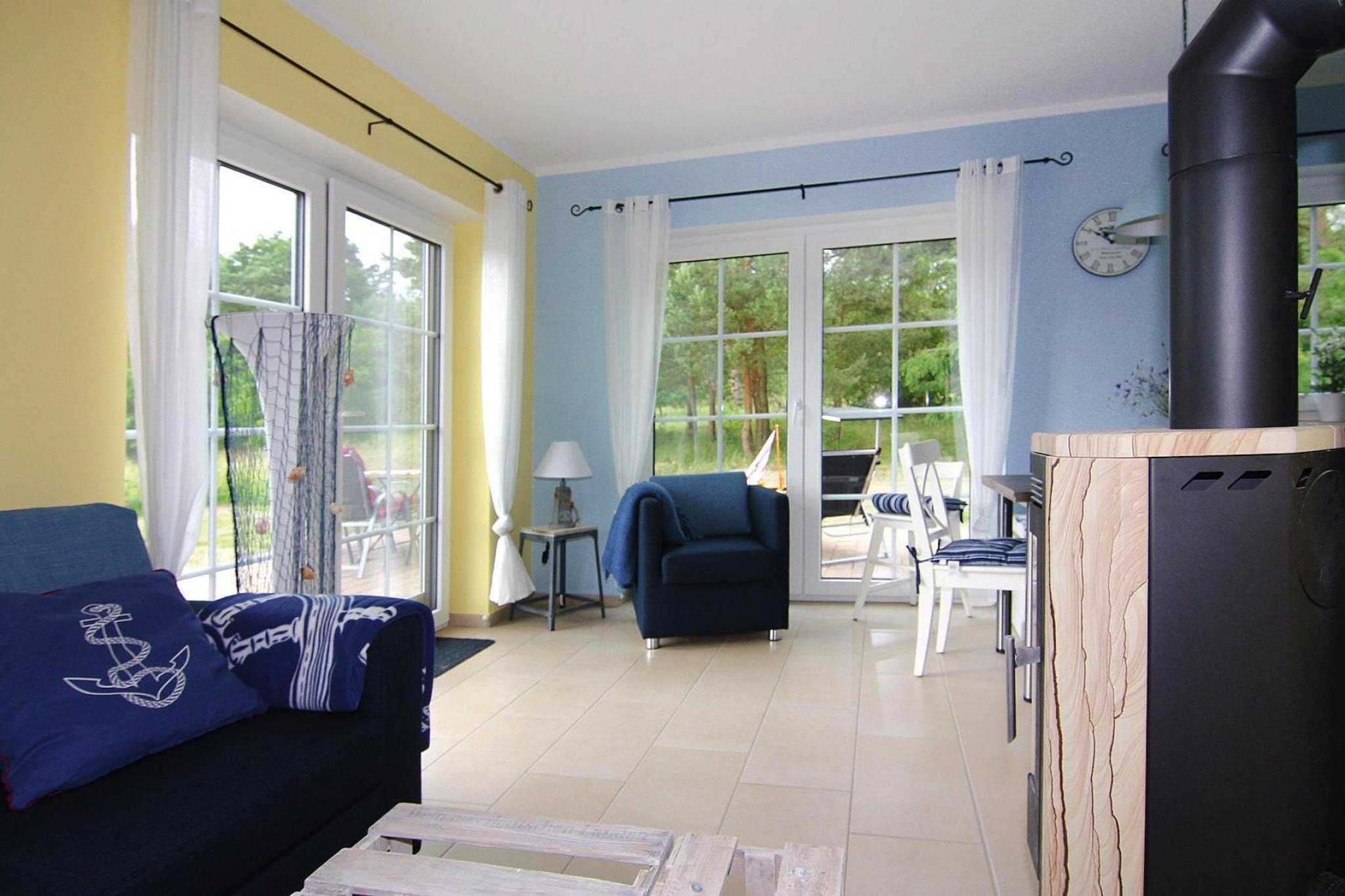Familienfreundliches Reetdachhaus mit Kaminofen, 400 m vom Haff, ideal für entspannte Urlaubstage mit Kindern und Komfort.