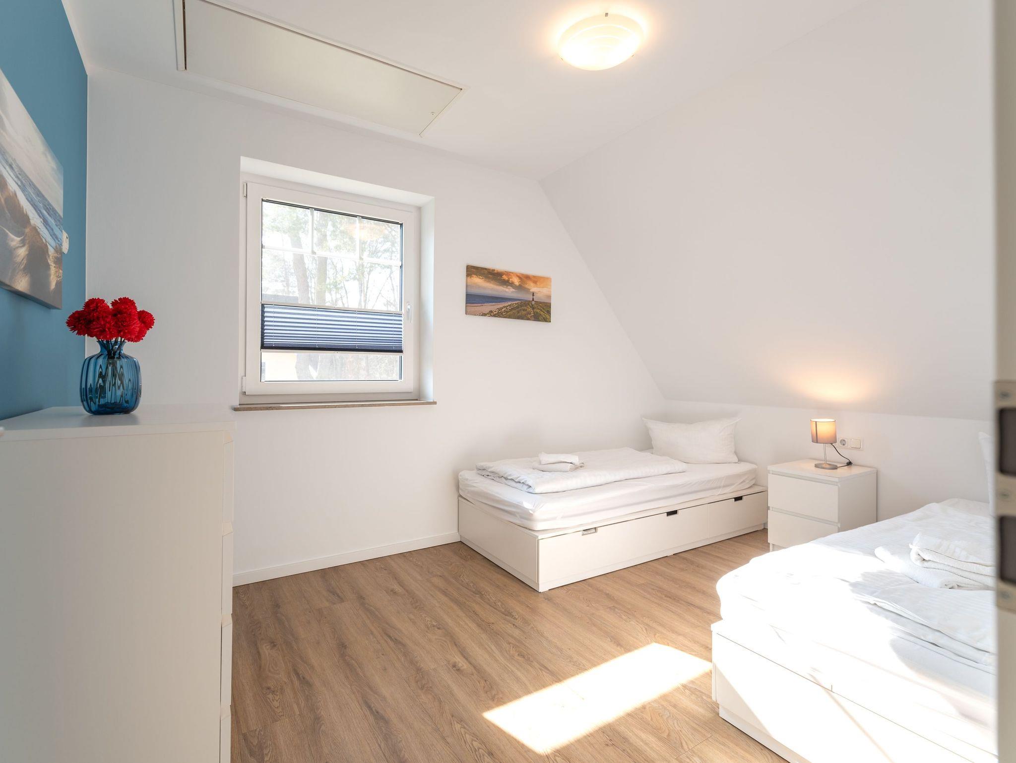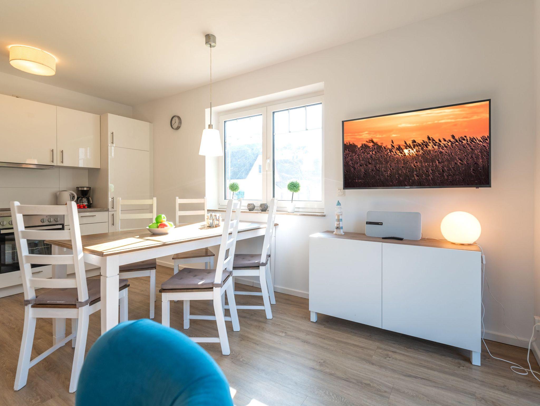 Das Ferienhaus Meerle befindet sich im idyllischen Fischerdorf Zirchow und bietet auf einer Fläche von 63 m² Platz für bis zu 6 Personen. Die Doppelhaushälfte verfügt über einen offenen Wohnbereich mit Zugang zur Terrasse, 2 gemütliche Schlafzimmer und 2 moderne Badezimmer - eins davon mit Sauna.