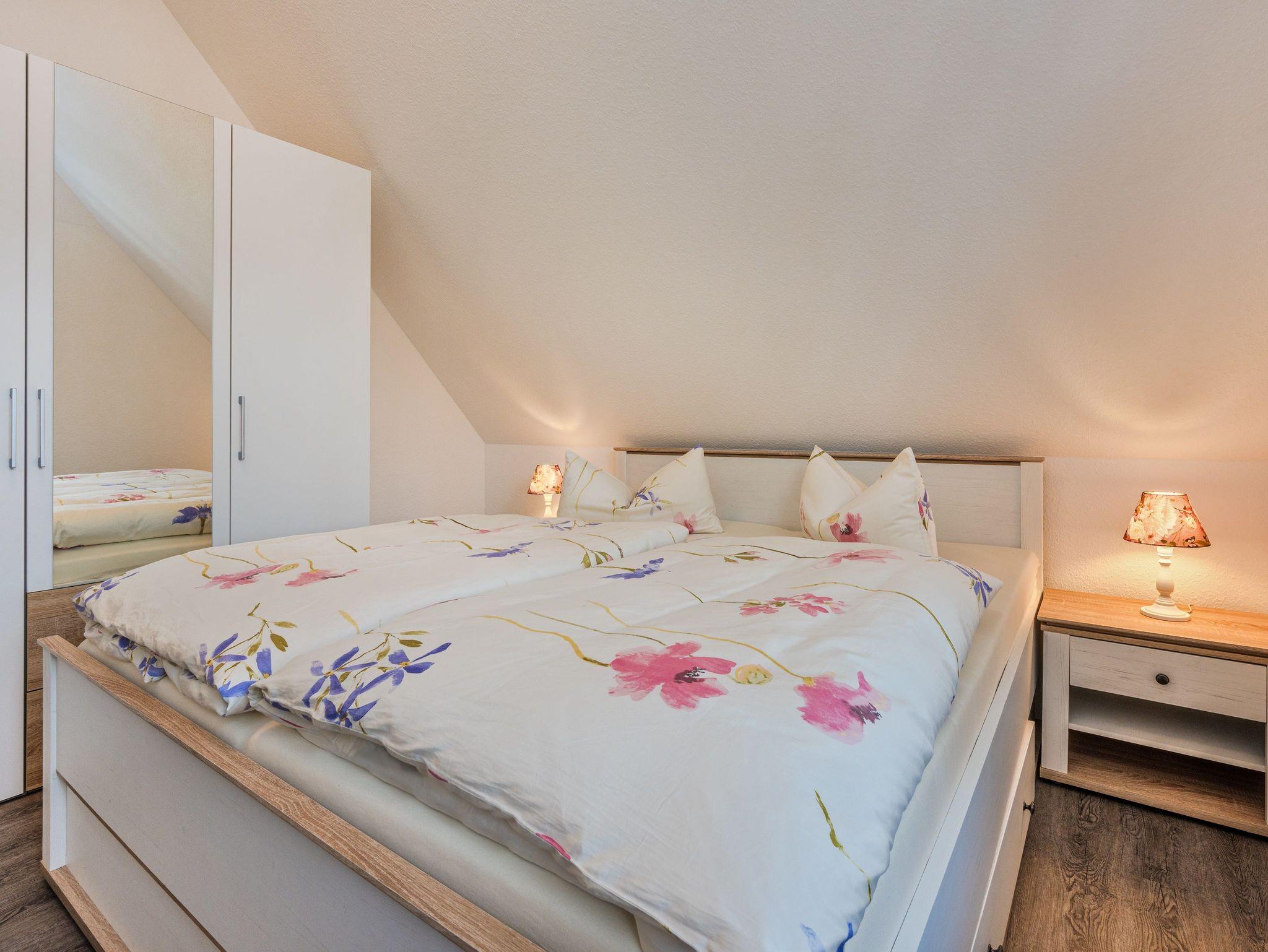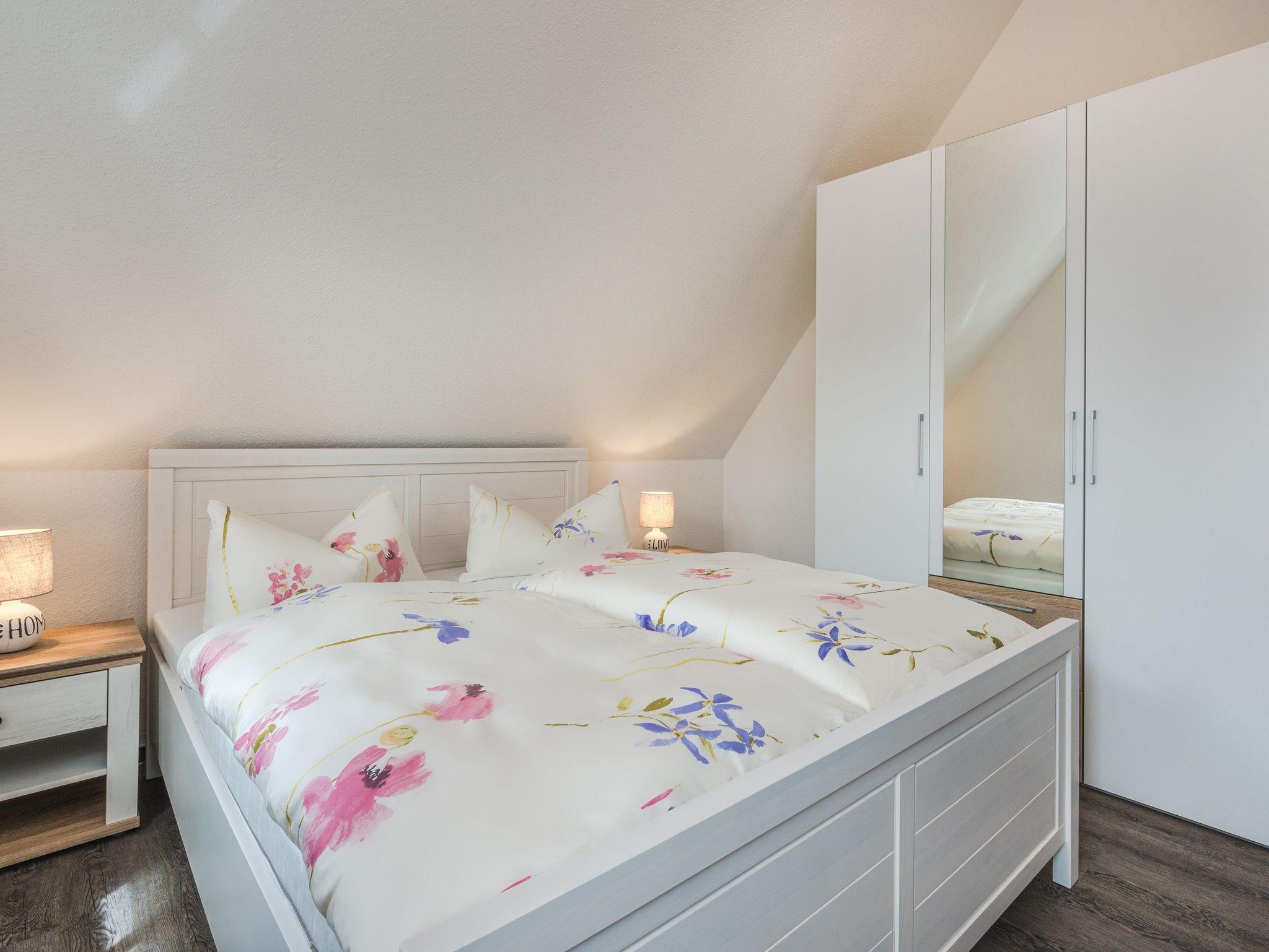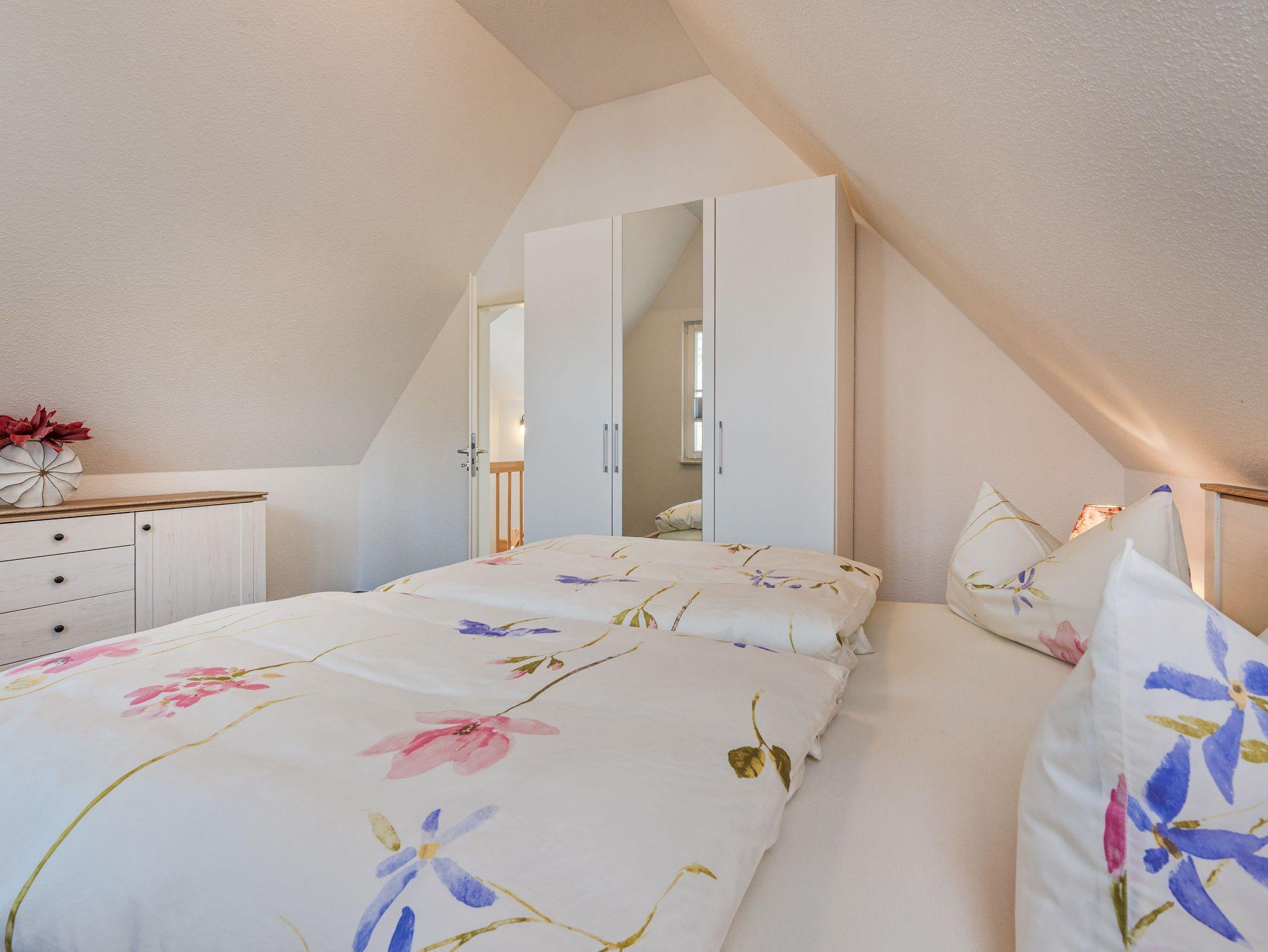 Zwei Schlafzimmer mit je einem Doppelbett und Kleiderschränken befinden sich im Obergeschoß und bieten ausreichend Rückzugsraum. Ein weiteres Badezimmer mit Dusche und Badewanne sorgt für zusätzlichen Komfort.