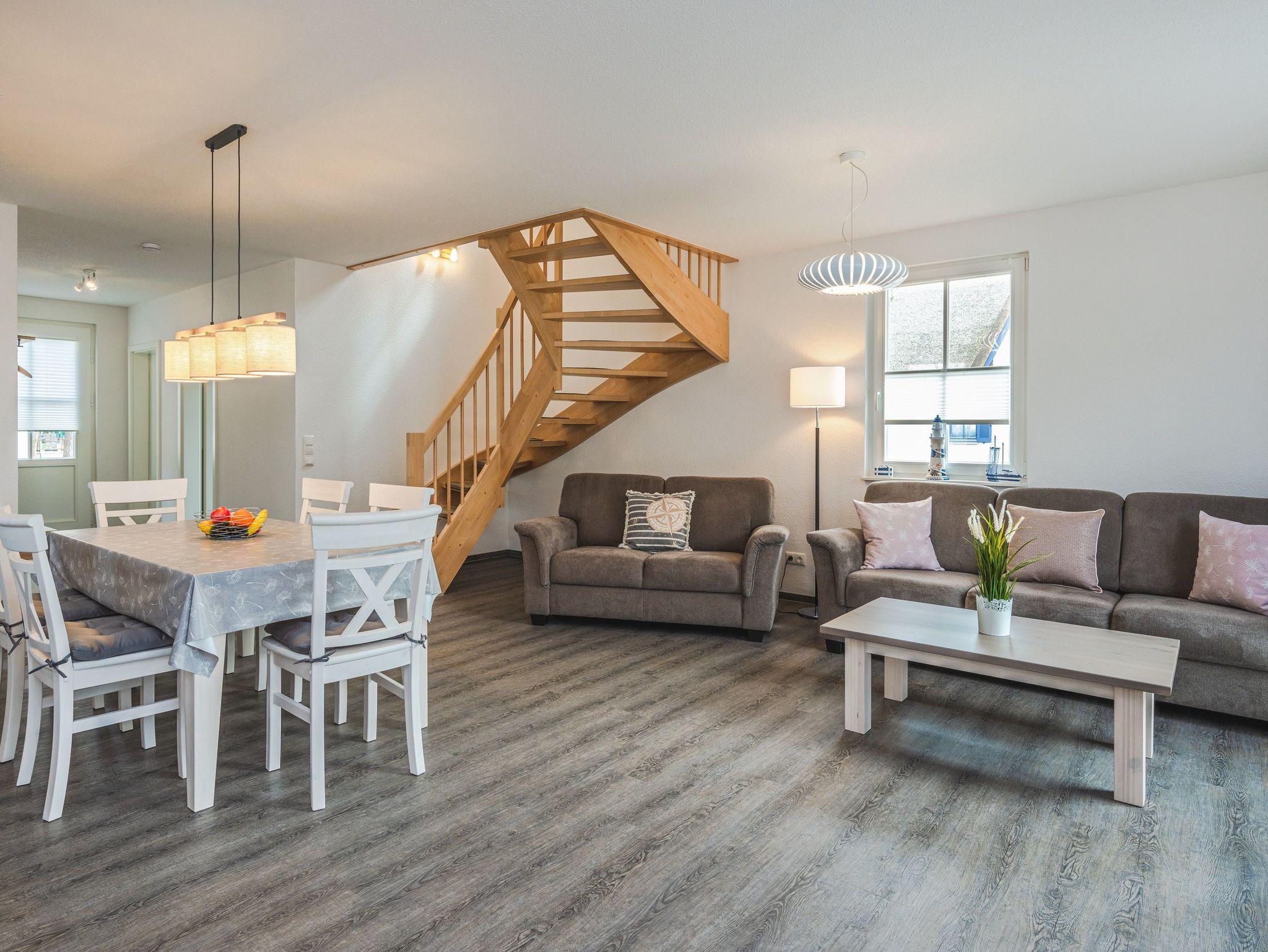 Willkommen in diesem charmanten Reetdachhaus mit ca. 88 m² Wohnfläche, komfortabler Ausstattung und Platz für bis zu 4 Personen. Das großzügige Wohnzimmer lädt mit zwei gemütlichen Couchen und einem großen Smart-TV-Flachbildfernseher zum Relaxen ein. Von hier aus erreichen Sie bequem die Süd/West-Terrasse, auf der Sie die Abende entspannt ausklingen lassen.
