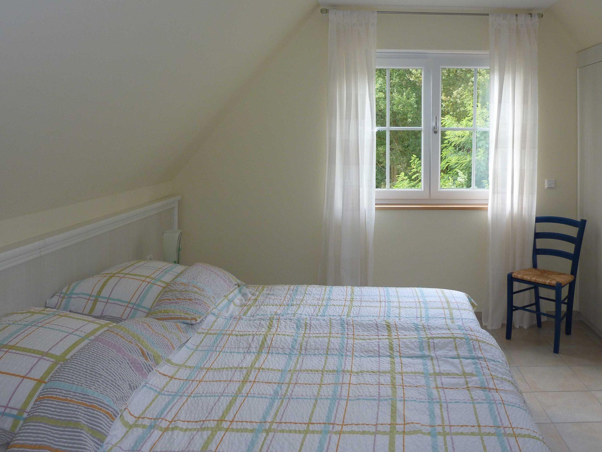 Im Obergeschoss liegen zwei Schlafräume mit Doppelbetten bzw. individuell einstellbar 2 getrennten Betten. Die zusätzliche Aufbettung auf der Schlafcouch im Wohnraum ermöglicht 2 weitere Schlafplätze. Für Kleinkinder ist ein Kinderreisebett und Kinderstuhl vorhanden. Als weiteres befindet sich im OG das Bad mit Waschbecken, Badewanne, Toilette, Bidet und separater Dusche.